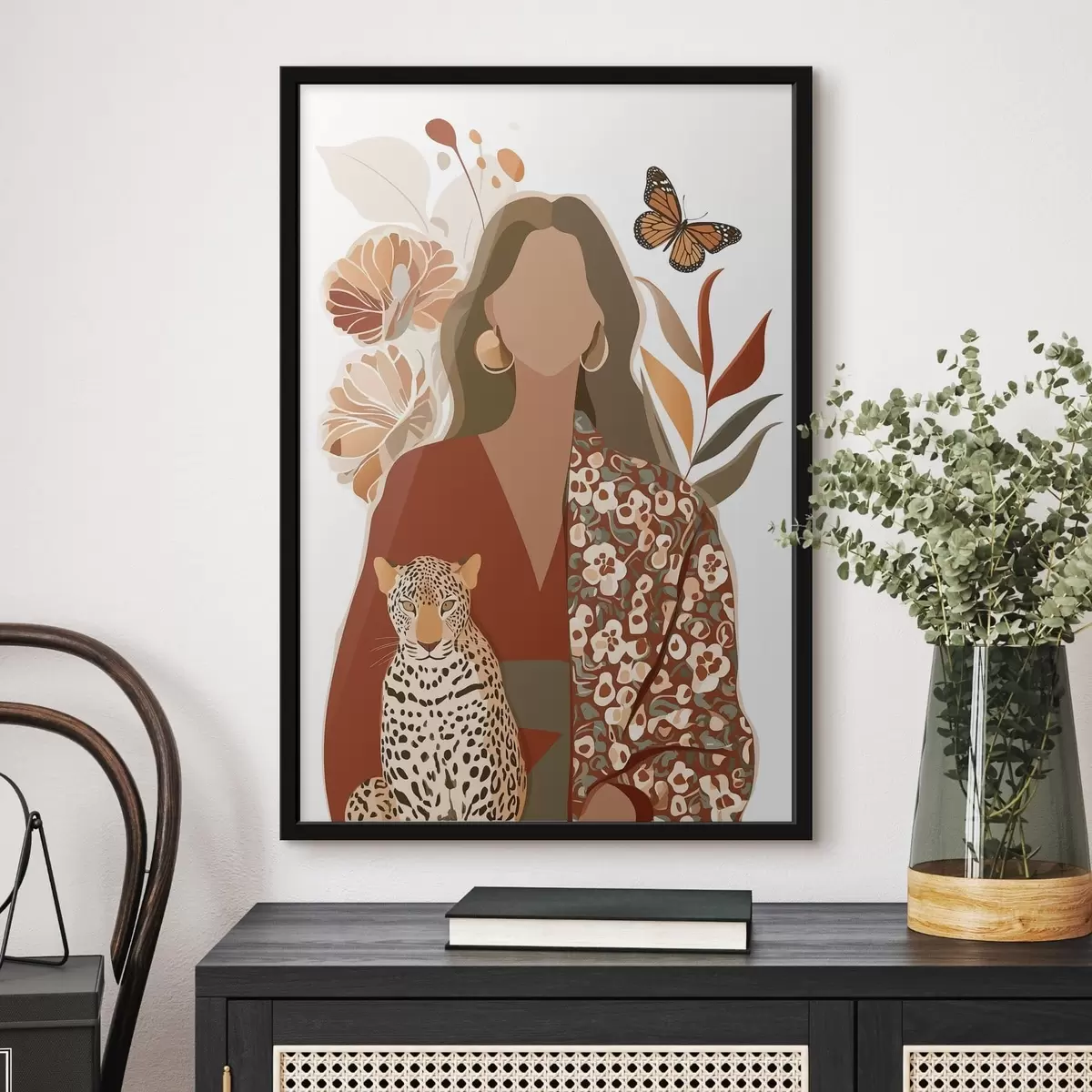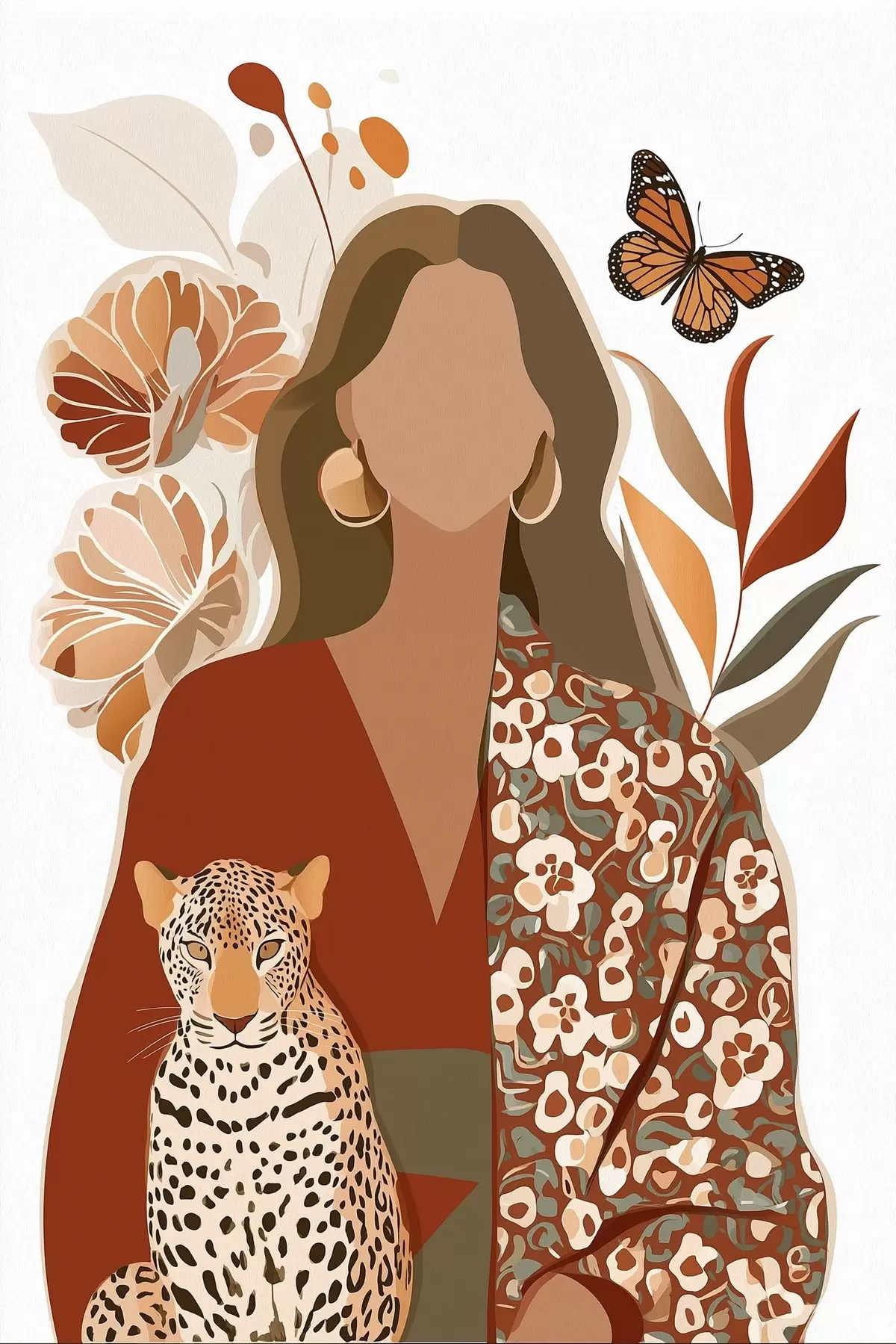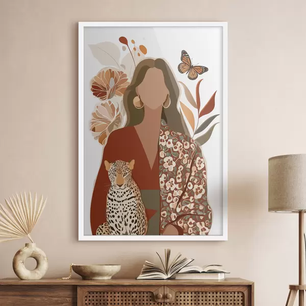 Poster Mujer con fondo floral f48435