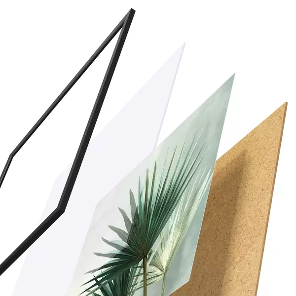 El póster consta de marco, plexiglás, imagen impresa y soporte de aglomerado. El póster puede colgarse inmediatamente en la pared gracias a los soportes de la parte posterior.