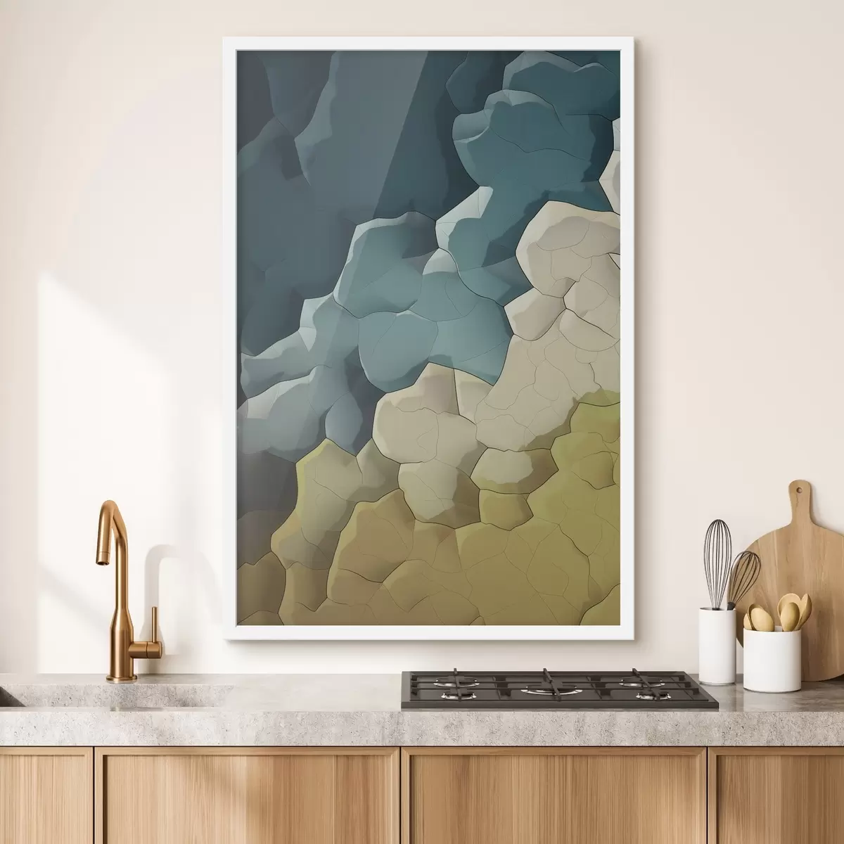 Poster Abstracción en tonos beige y turquesa, arte geométrico Nr f48477