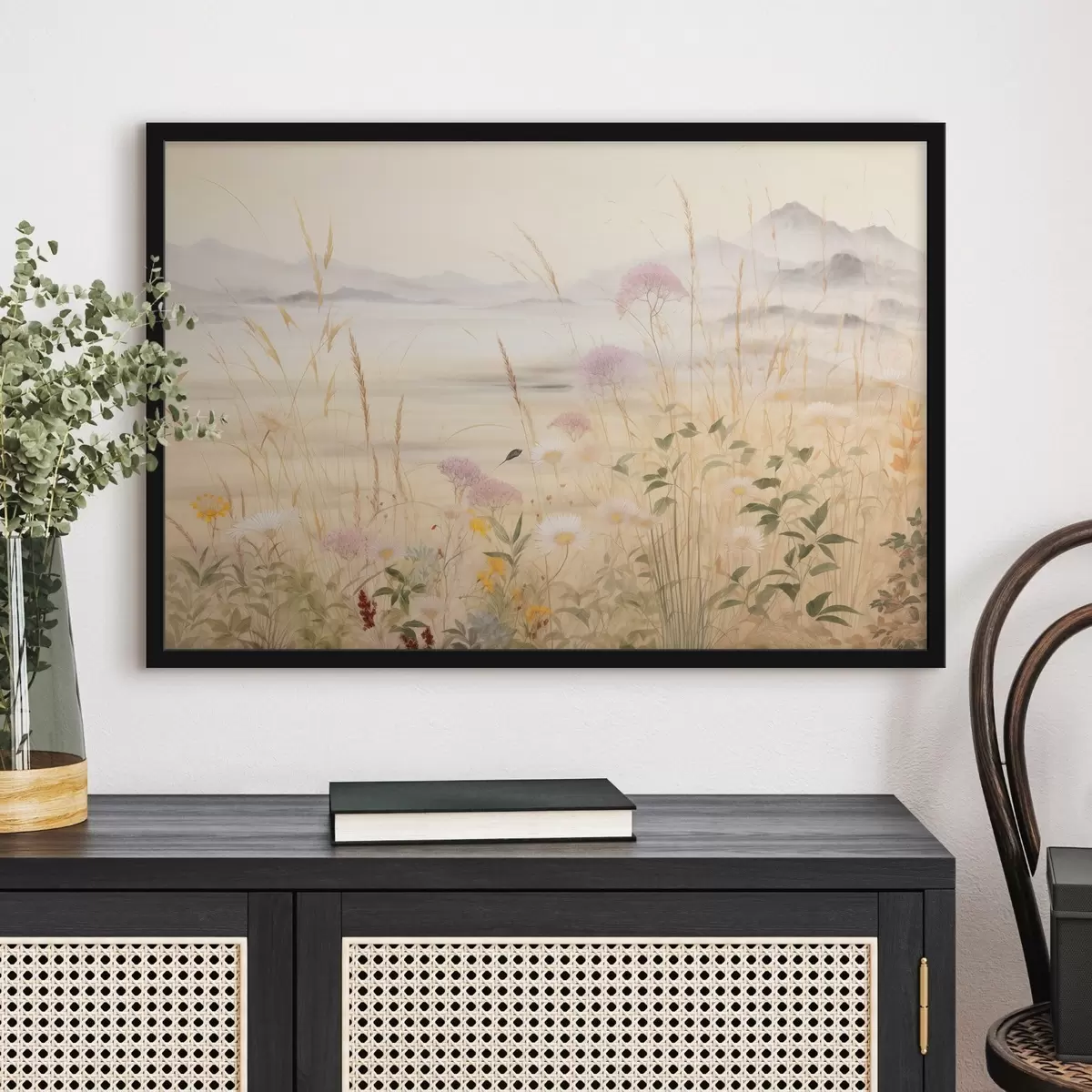 Poster Campo de flores beige, hierbas de pradera, paisaje delicado f48480