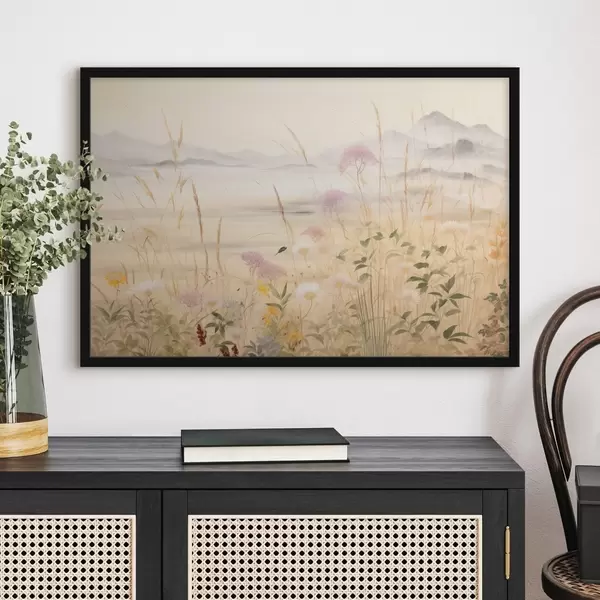 Poster Campo de flores beige, hierbas de pradera, paisaje delicado Nr f48480