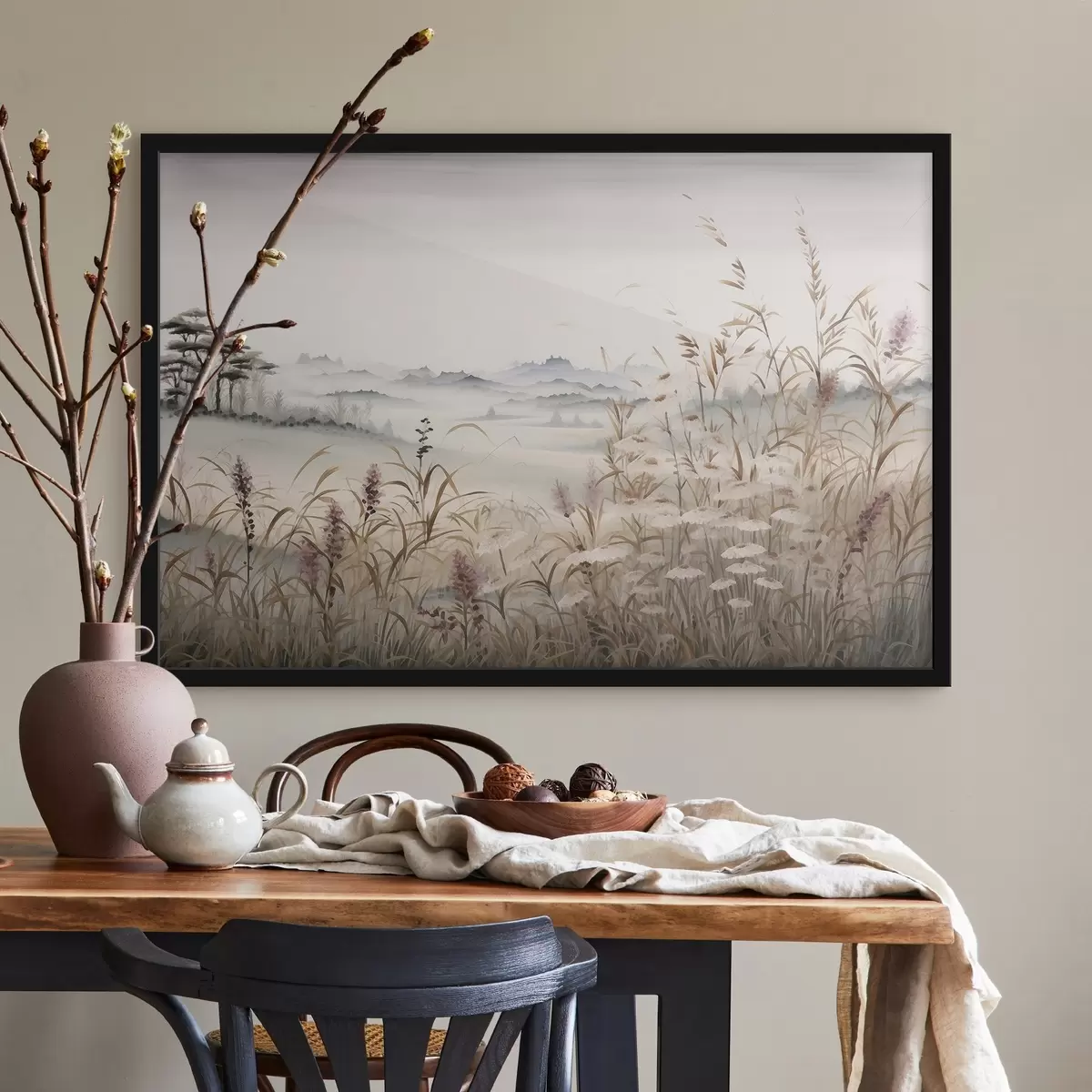Poster Paisaje brumoso con pastos Nr f48481
