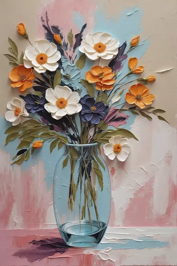 Poster Ramo de flores en un jarrón de cristal sobre un fondo colorido f48488