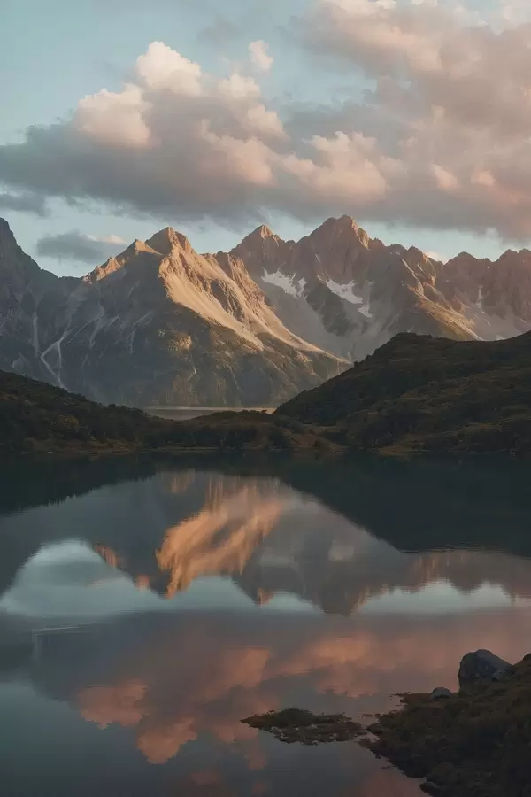 Poster Paisaje montañoso con el reflejo del lago Nr f48493