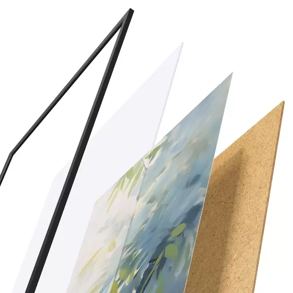 El póster consta de marco, plexiglás, imagen impresa y soporte de aglomerado. El póster puede colgarse inmediatamente en la pared gracias a los soportes de la parte posterior.