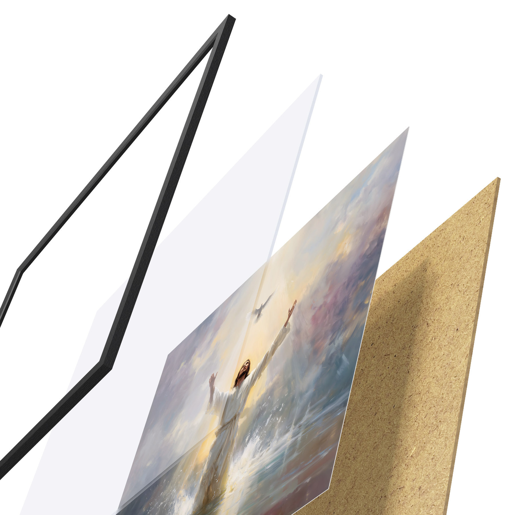 El póster consta de marco, plexiglás, imagen impresa y soporte de aglomerado. El póster puede colgarse inmediatamente en la pared gracias a los soportes de la parte posterior.