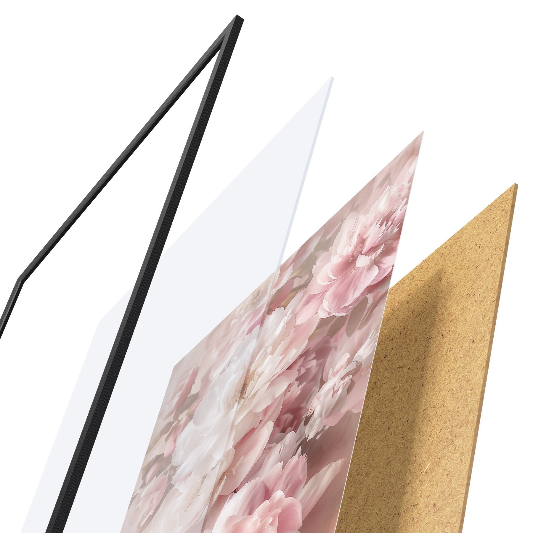 El póster consta de marco, plexiglás, imagen impresa y soporte de aglomerado. El póster puede colgarse inmediatamente en la pared gracias a los soportes de la parte posterior.