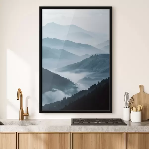 Poster Montañas brumosas, paisaje azul Nr f48567