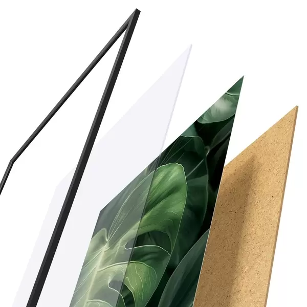 El póster consta de marco, plexiglás, imagen impresa y soporte de aglomerado. El póster puede colgarse inmediatamente en la pared gracias a los soportes de la parte posterior.
