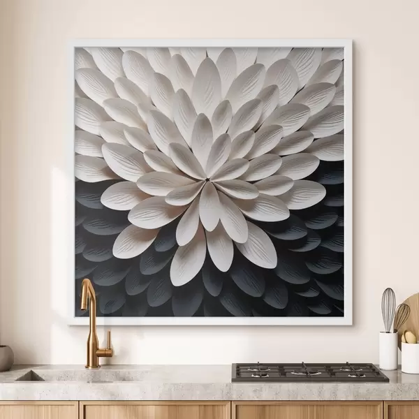 Poster Flor abstracta con numerosos pétalos superpuestos y ligeros f48605