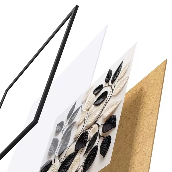 El póster consta de marco, plexiglás, imagen impresa y soporte de aglomerado. El póster puede colgarse inmediatamente en la pared gracias a los soportes de la parte posterior.
