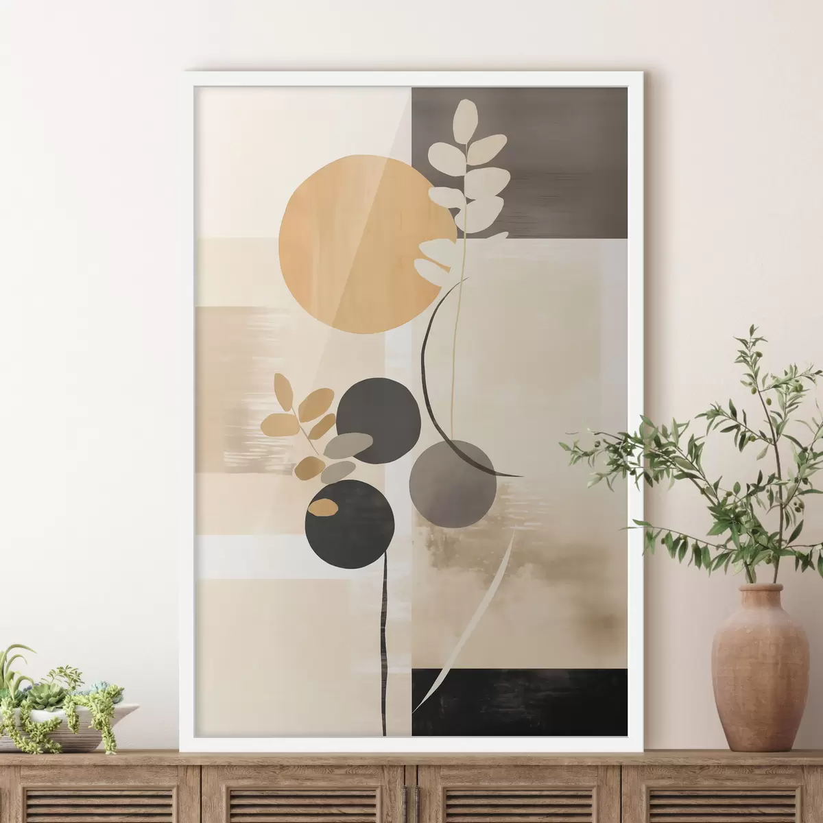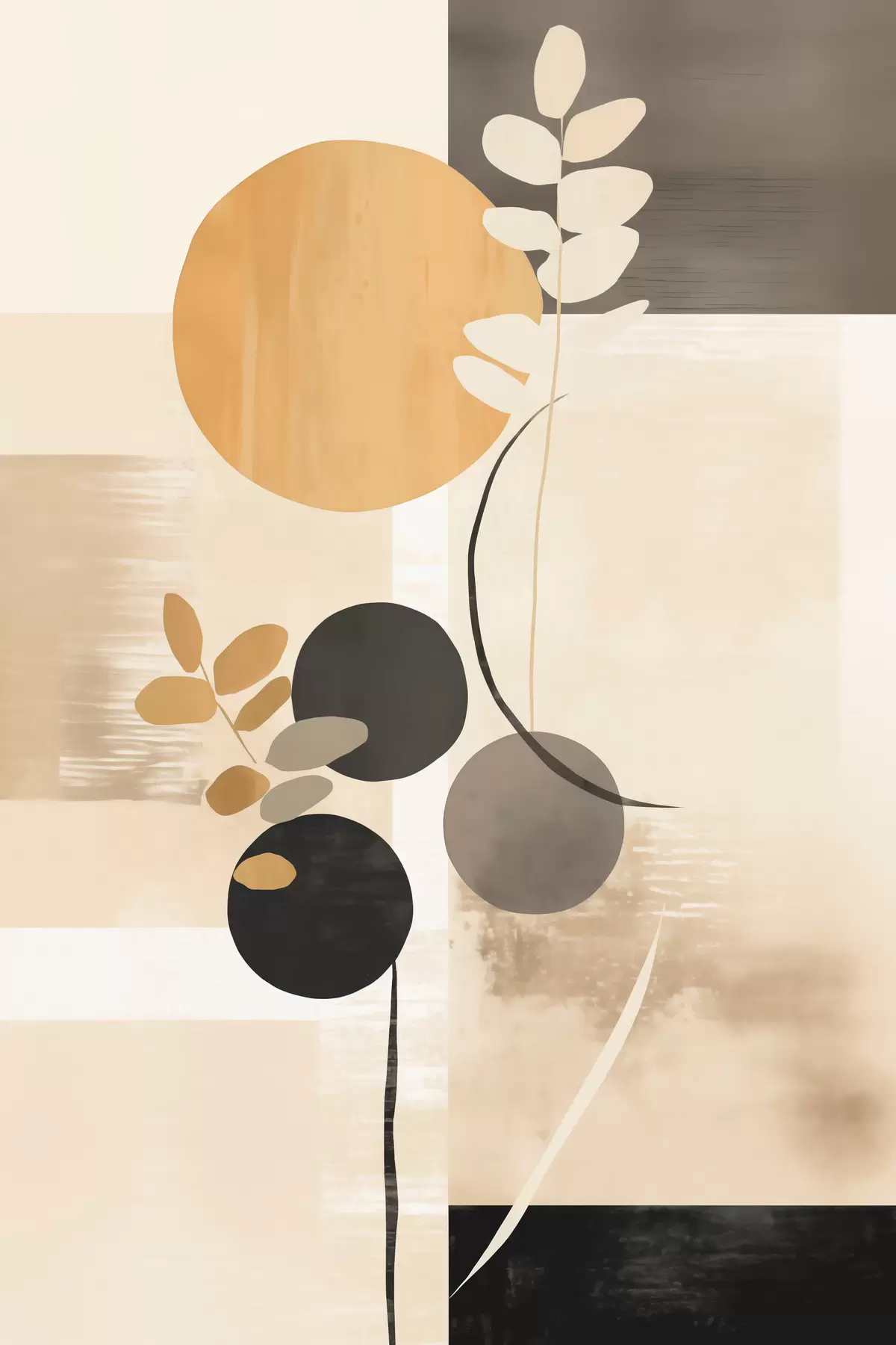 Poster Una composición abstracta con hojas y círculos f48612