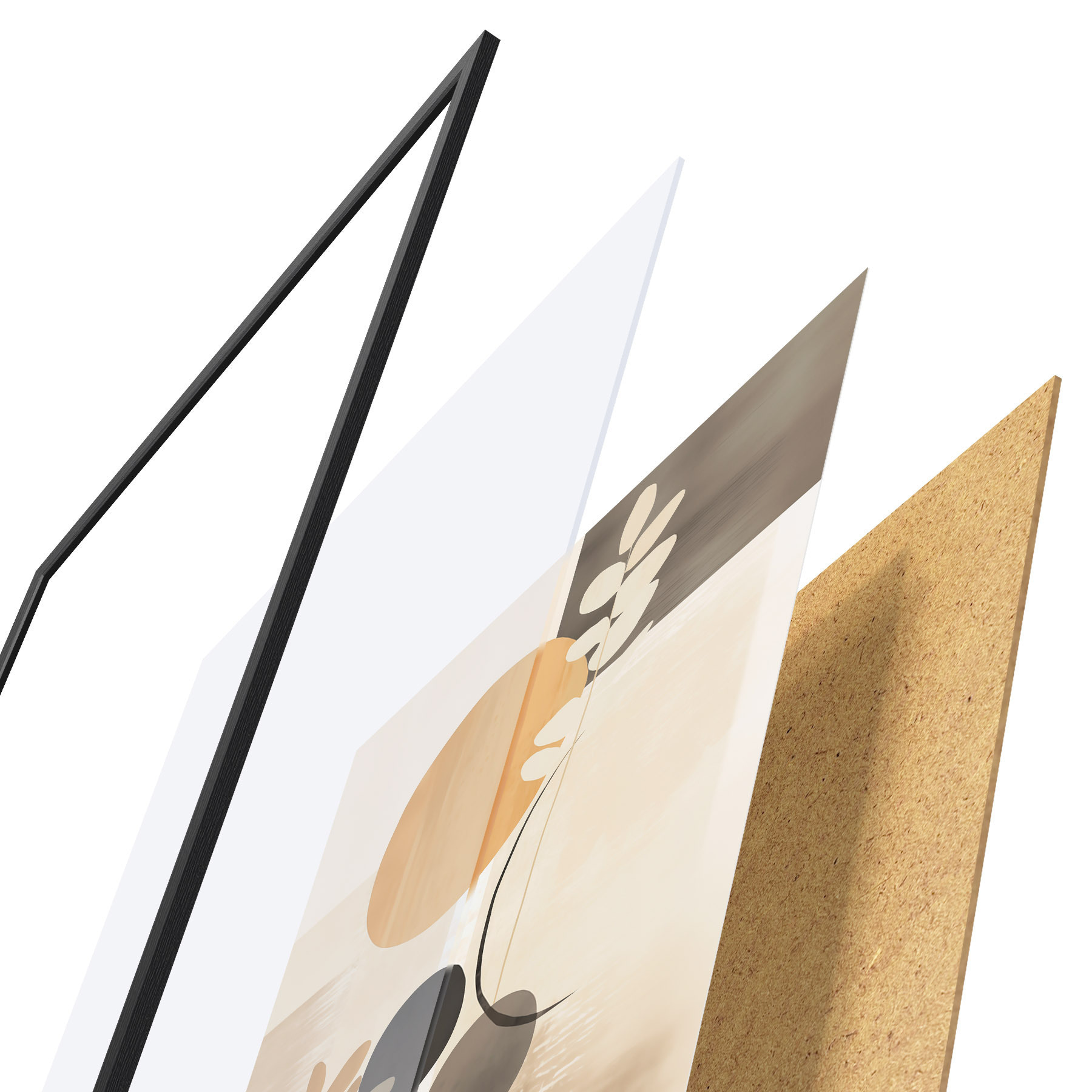 El póster consta de marco, plexiglás, imagen impresa y soporte de aglomerado. El póster puede colgarse inmediatamente en la pared gracias a los soportes de la parte posterior.