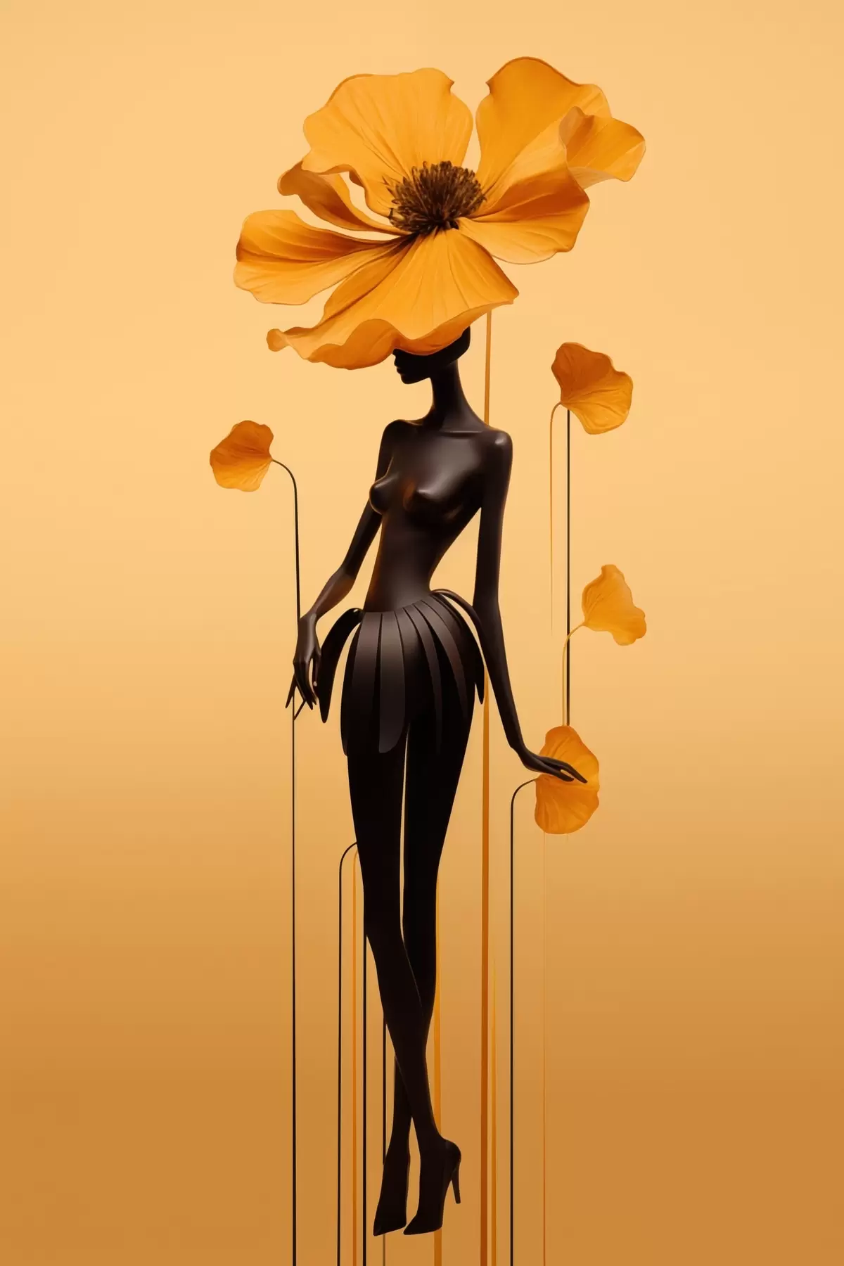 Poster Una elegante figura con flores sobre un fondo con un cálido degradado f48619