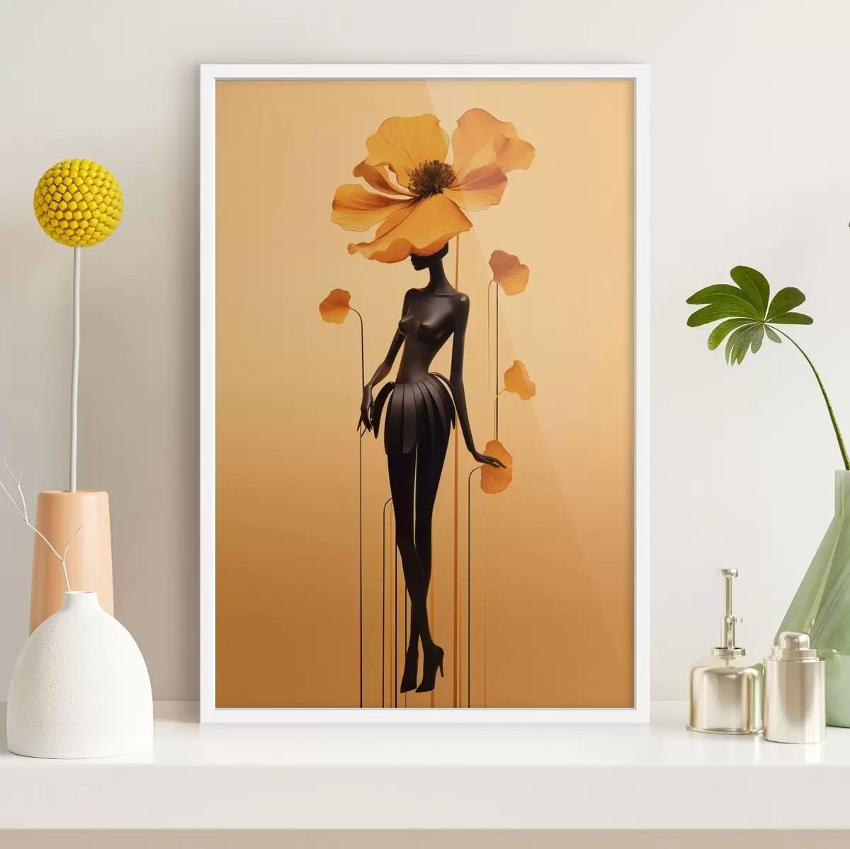 Poster Una elegante figura con flores sobre un fondo con un cálido degradado Nr f48619