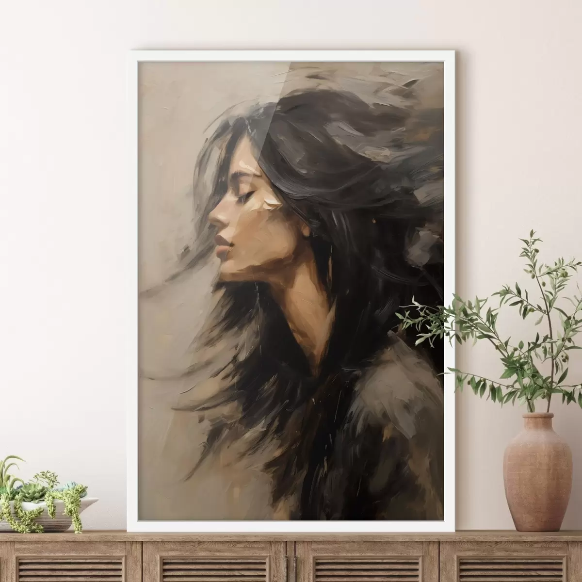 Poster Retrato de una mujer con el cabello suelto, en estilo pictórico Nr f48622