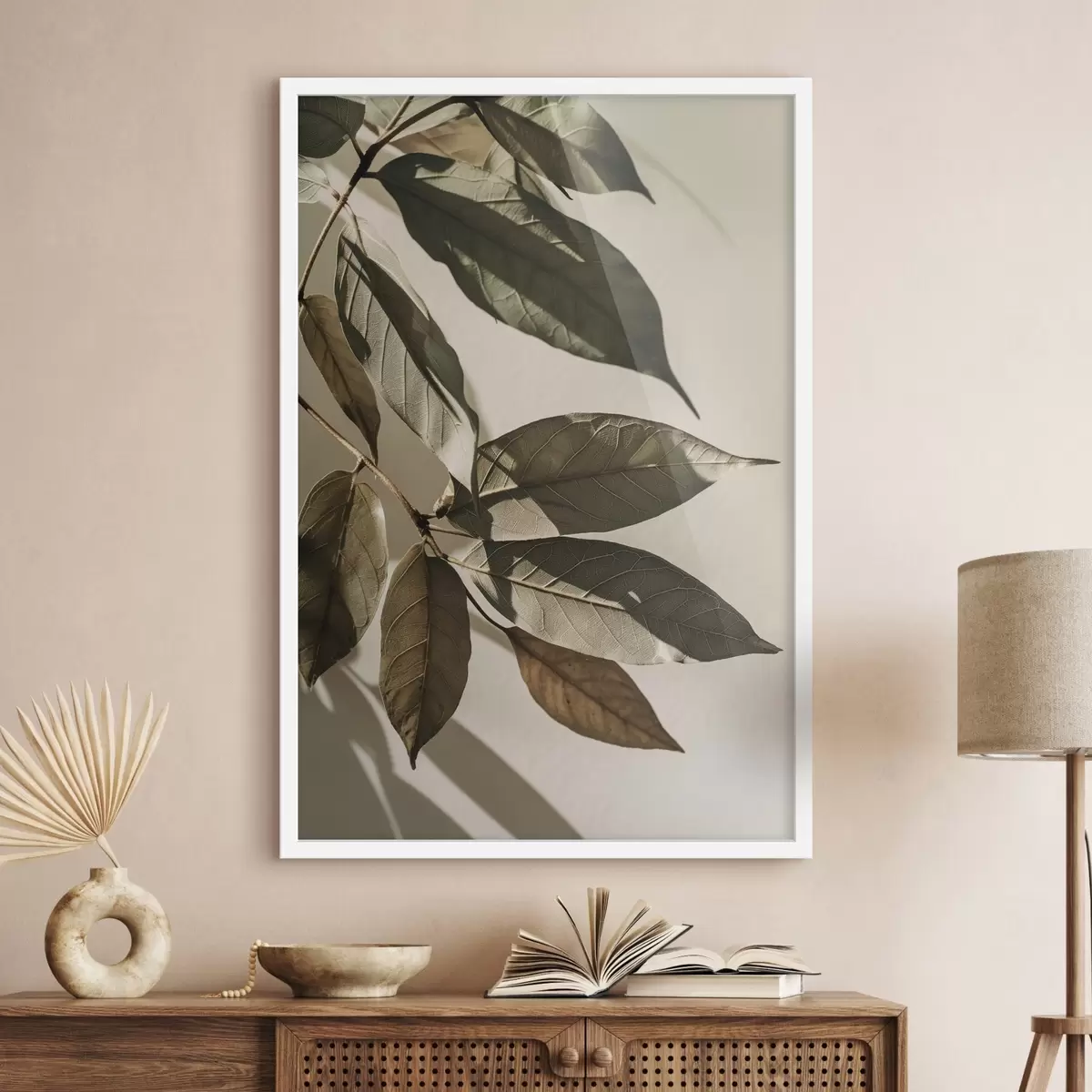 Poster Ramas de olivo, motivos botánicos en tonos beige y verde f48627