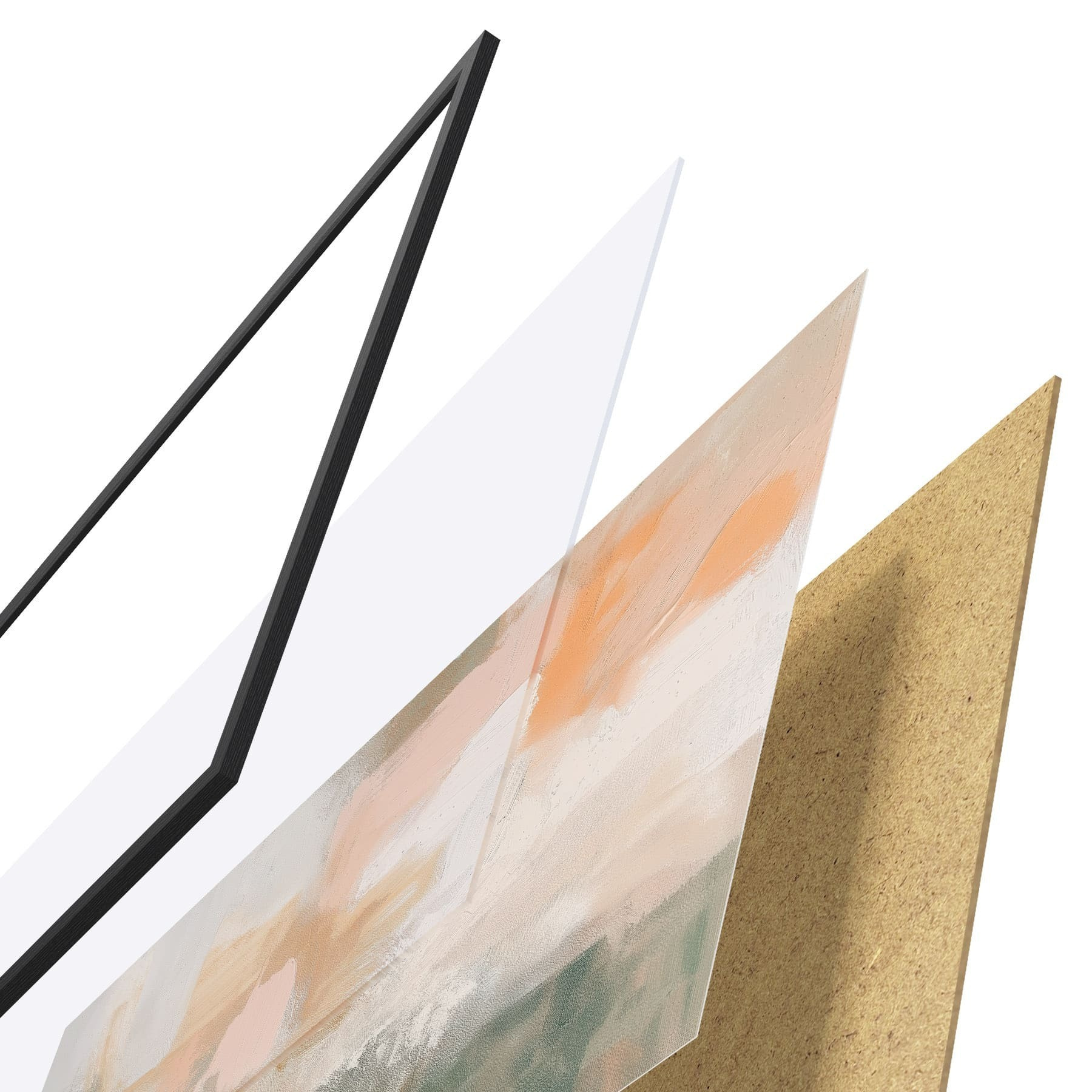 El póster consta de marco, plexiglás, imagen impresa y soporte de aglomerado. El póster puede colgarse inmediatamente en la pared gracias a los soportes de la parte posterior.