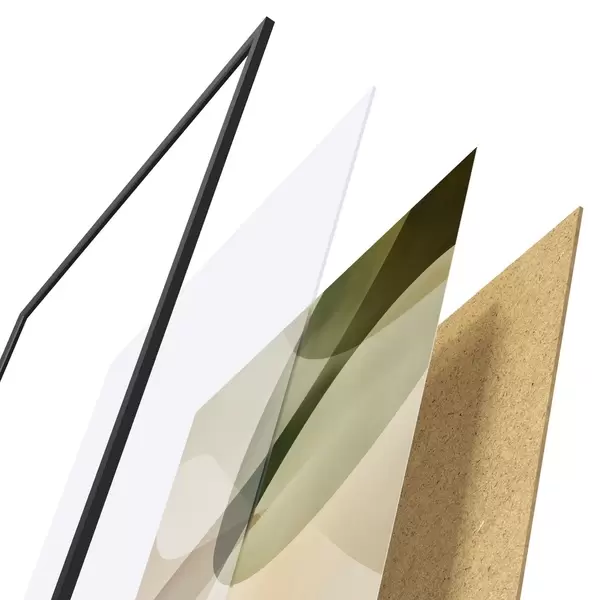 El póster consta de marco, plexiglás, imagen impresa y soporte de aglomerado. El póster puede colgarse inmediatamente en la pared gracias a los soportes de la parte posterior.
