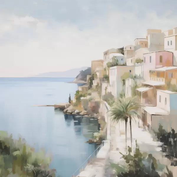 Poster Paisaje de una ciudad junto al mar, imitación de un cuadro Nr f48674