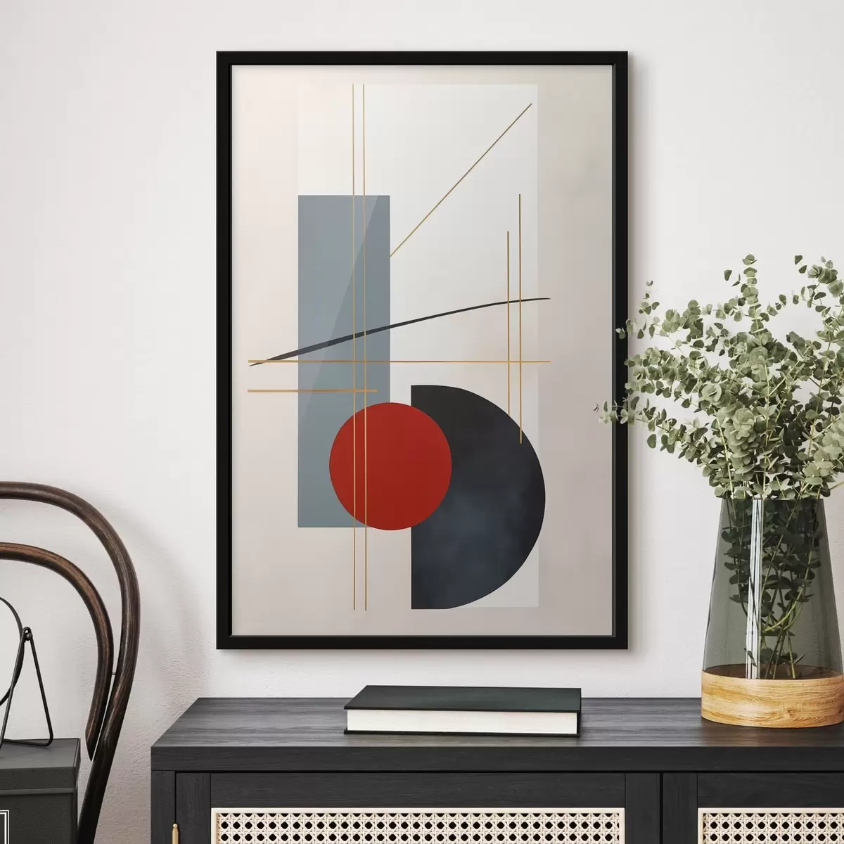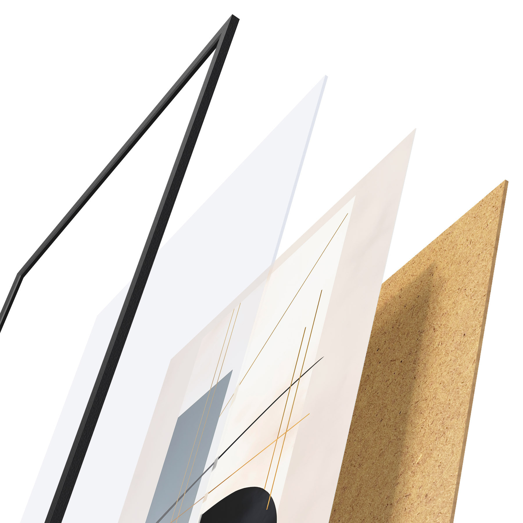 El póster consta de marco, plexiglás, imagen impresa y soporte de aglomerado. El póster puede colgarse inmediatamente en la pared gracias a los soportes de la parte posterior.