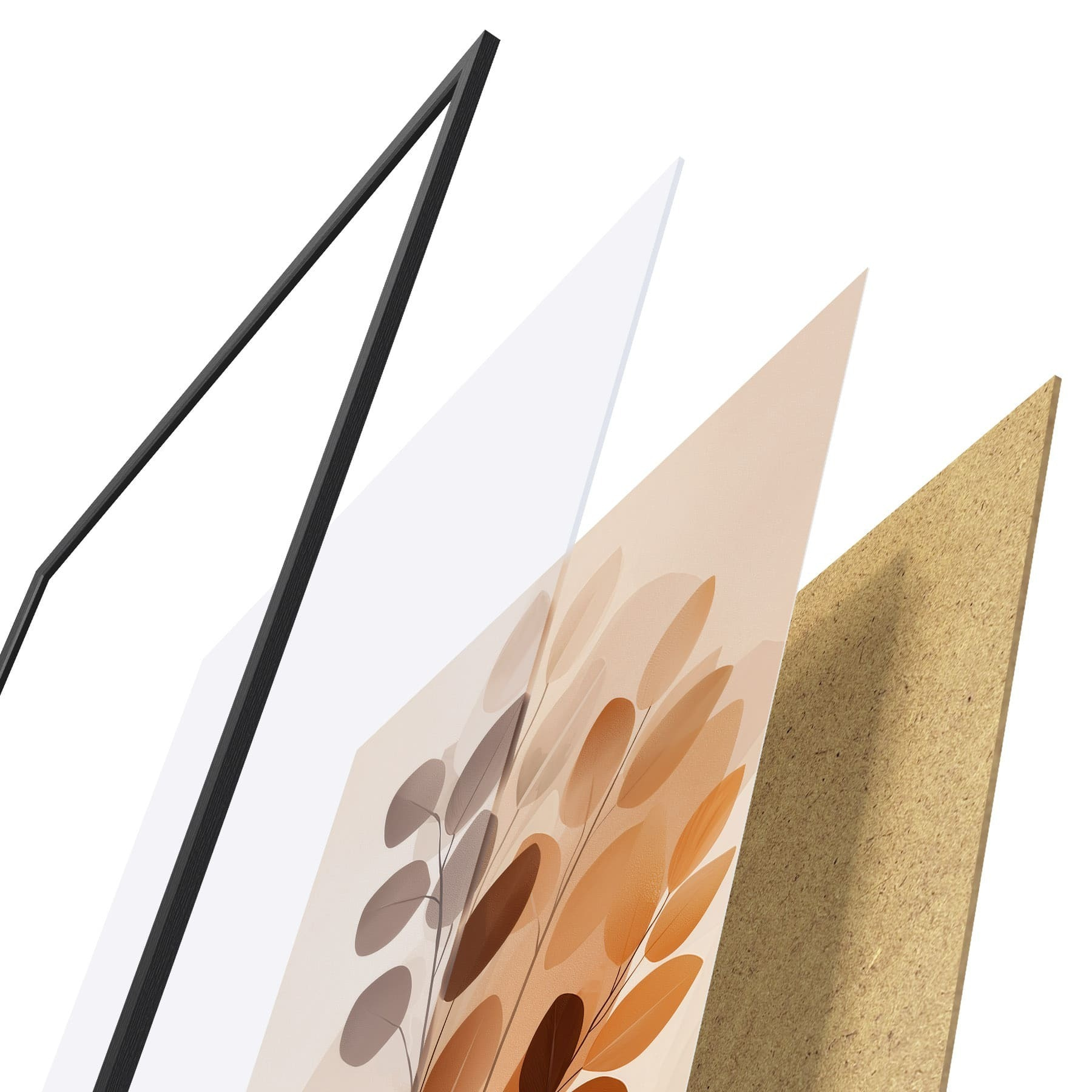 El póster consta de marco, plexiglás, imagen impresa y soporte de aglomerado. El póster puede colgarse inmediatamente en la pared gracias a los soportes de la parte posterior.