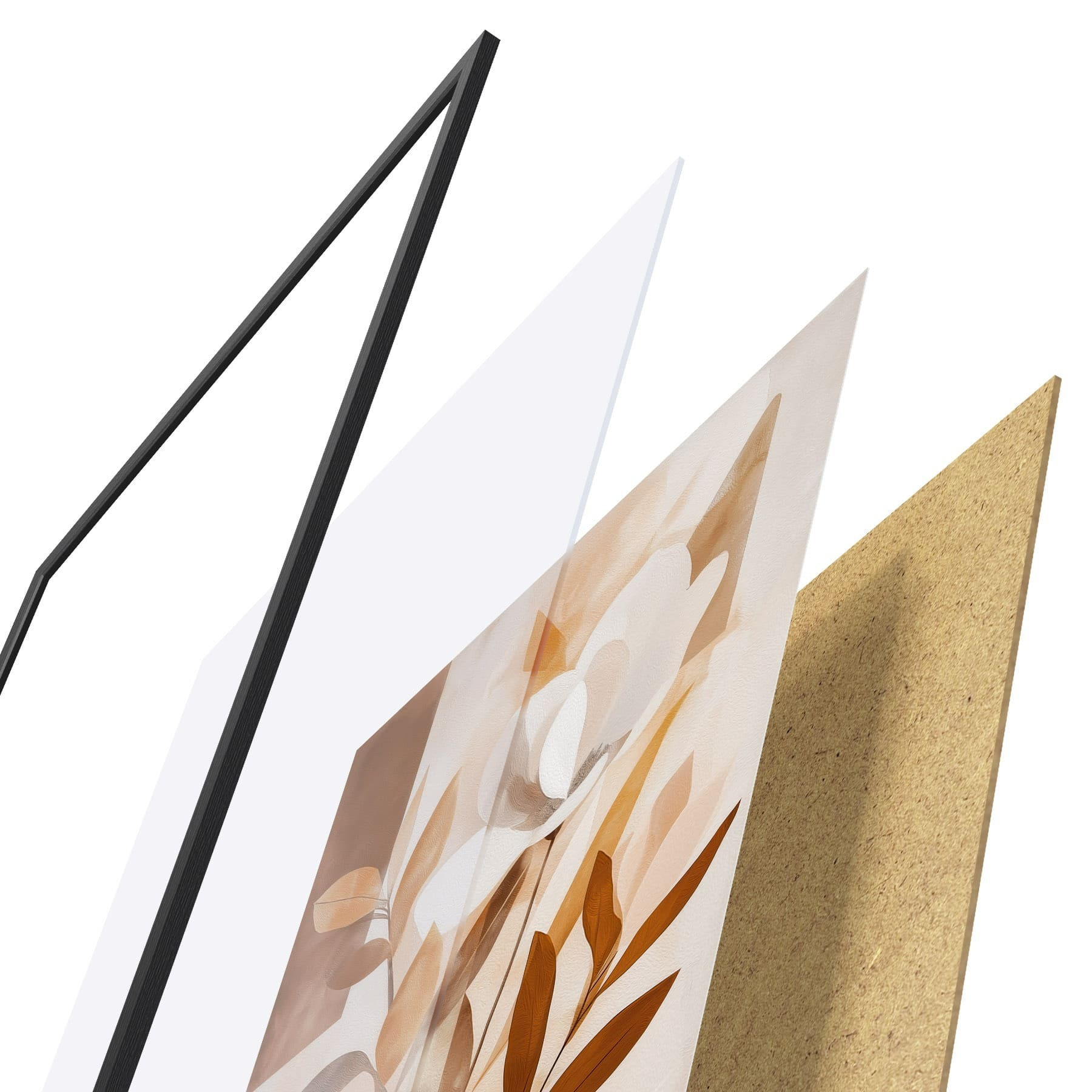 El póster consta de marco, plexiglás, imagen impresa y soporte de aglomerado. El póster puede colgarse inmediatamente en la pared gracias a los soportes de la parte posterior.