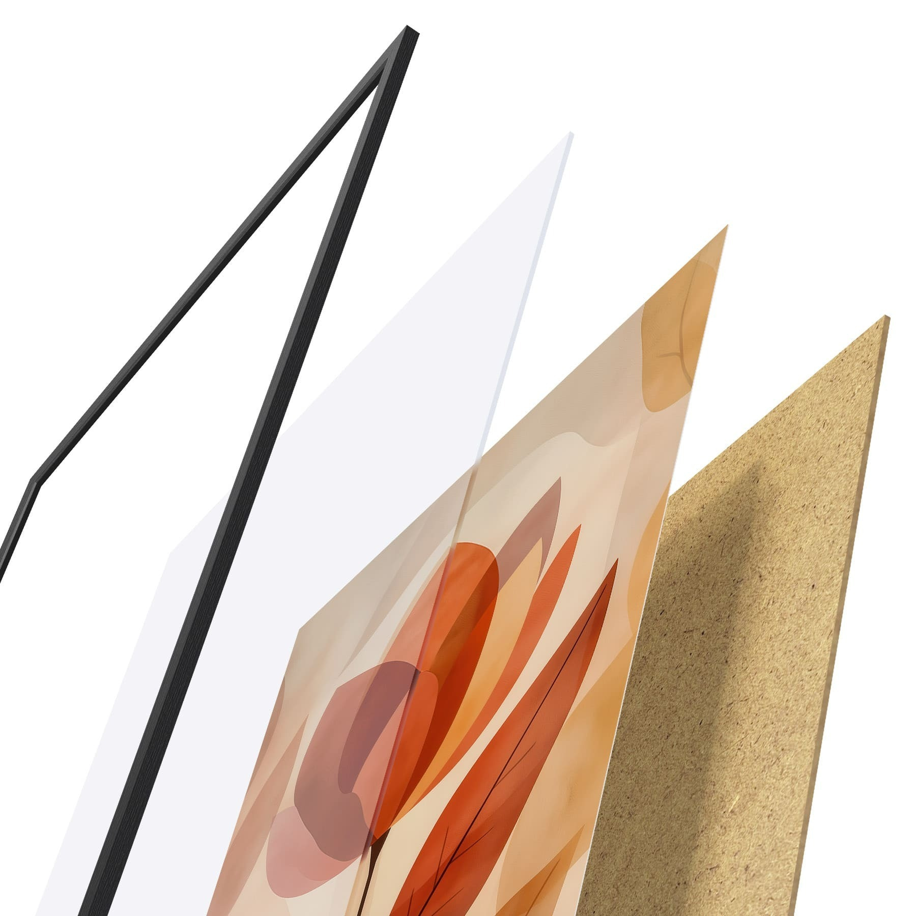 El póster consta de marco, plexiglás, imagen impresa y soporte de aglomerado. El póster puede colgarse inmediatamente en la pared gracias a los soportes de la parte posterior.