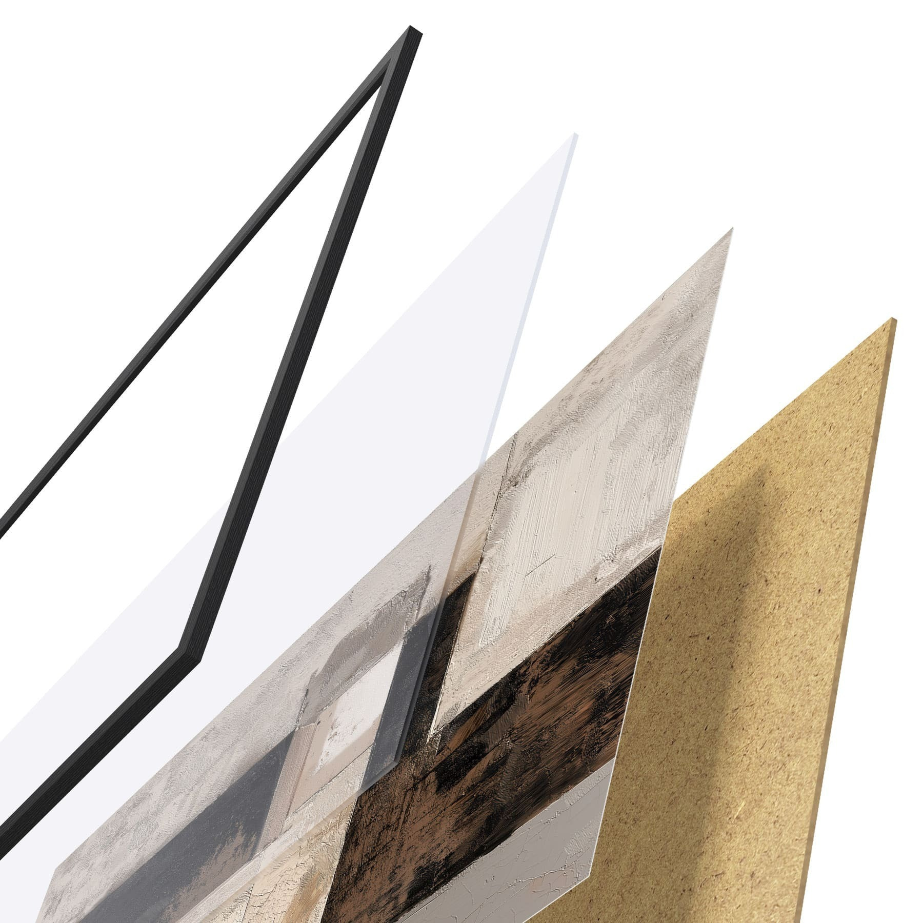El póster consta de marco, plexiglás, imagen impresa y soporte de aglomerado. El póster puede colgarse inmediatamente en la pared gracias a los soportes de la parte posterior.