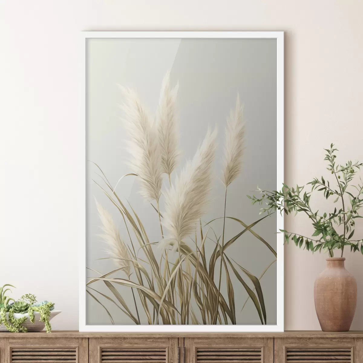Poster Varias plantas altas de hierba de la pampa, con hojas largas y delgadas Nr f48723