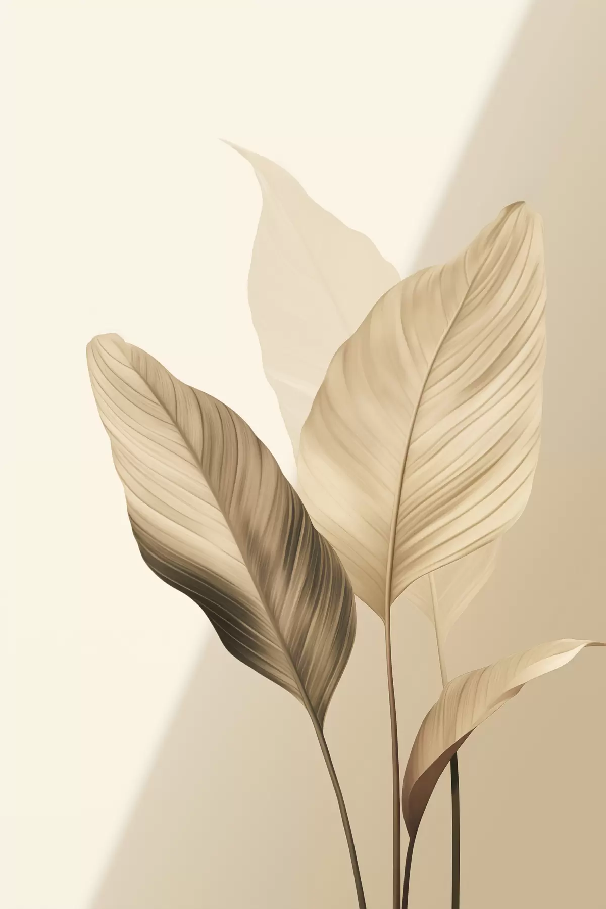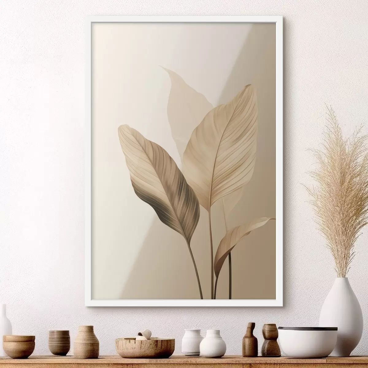 Poster Hojas tropicales grandes en tonos beige y marrón, sobre un fondo claro Nr f48726