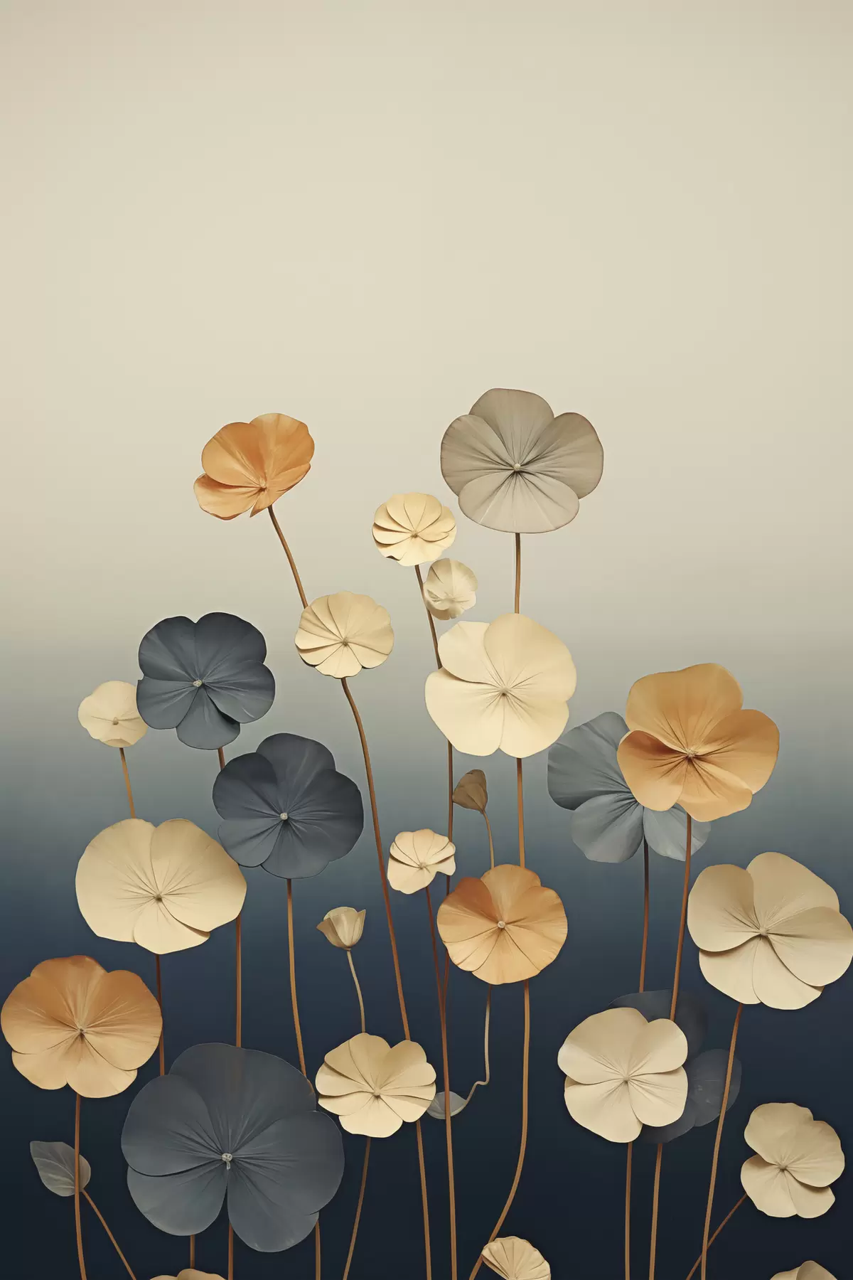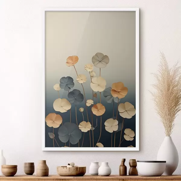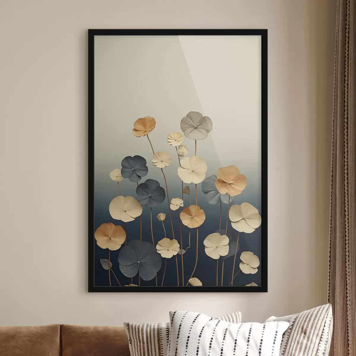 Poster Hojas de nenúfar sobre un fondo en tonos apagados de beige y azul oscuro Nr f48733