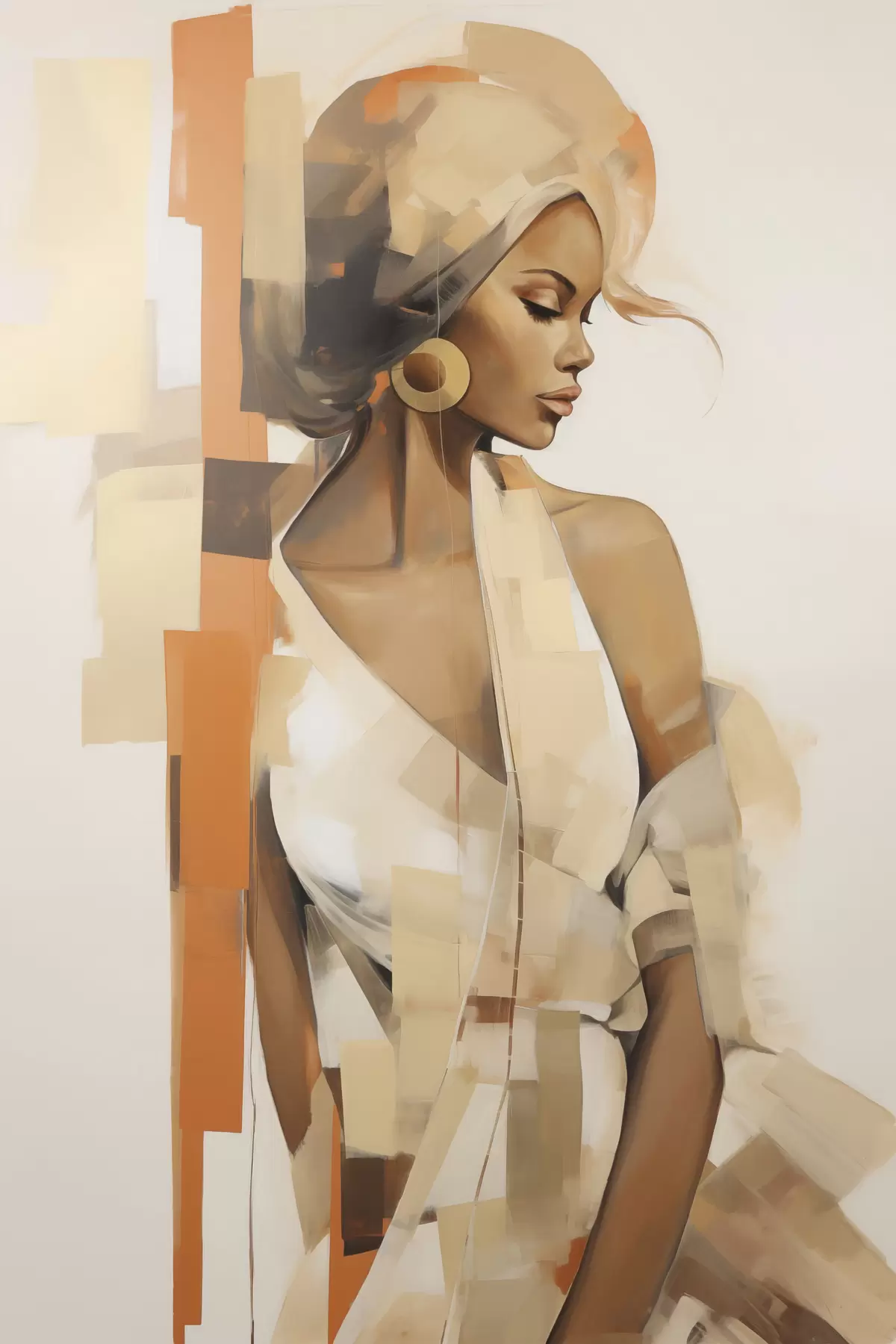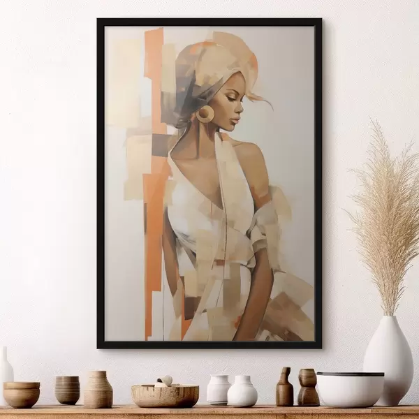 Poster Retrato abstracto de una mujer con formas naranjas y beige Nr f48735