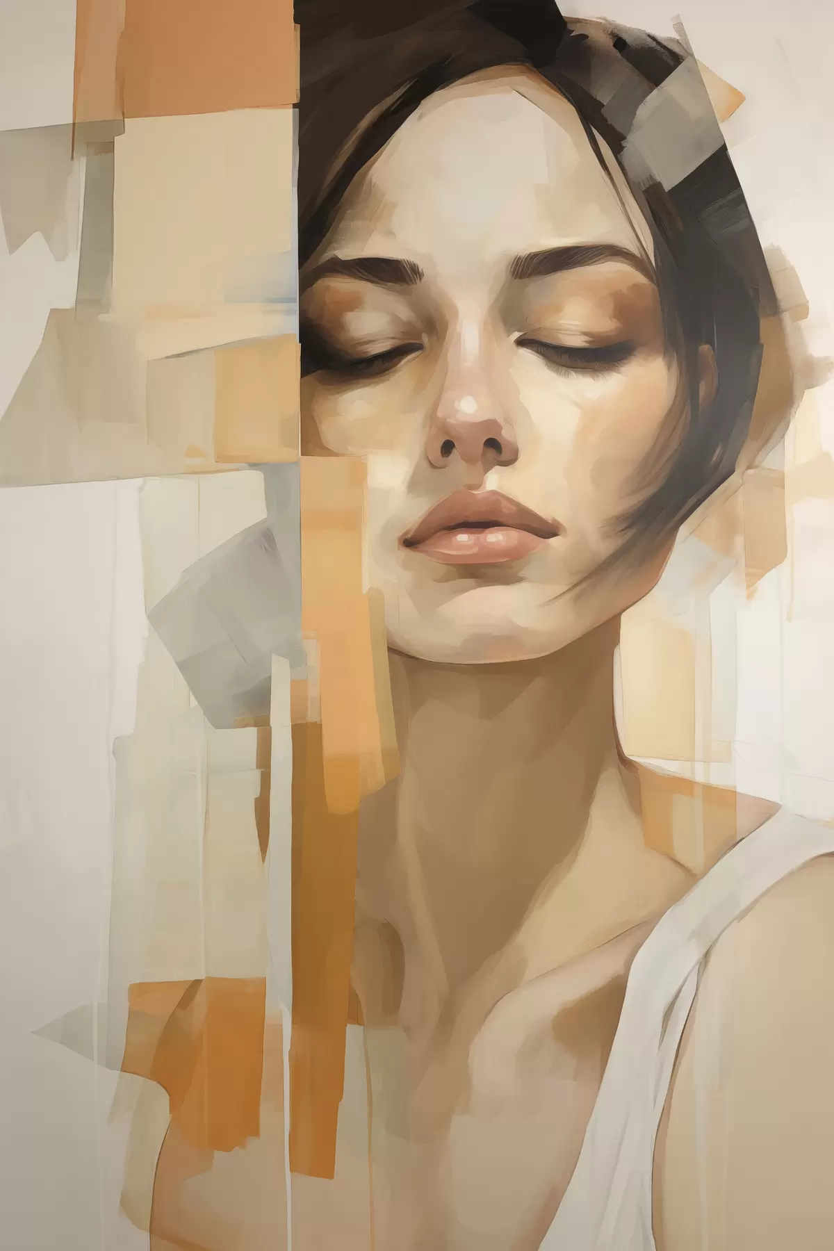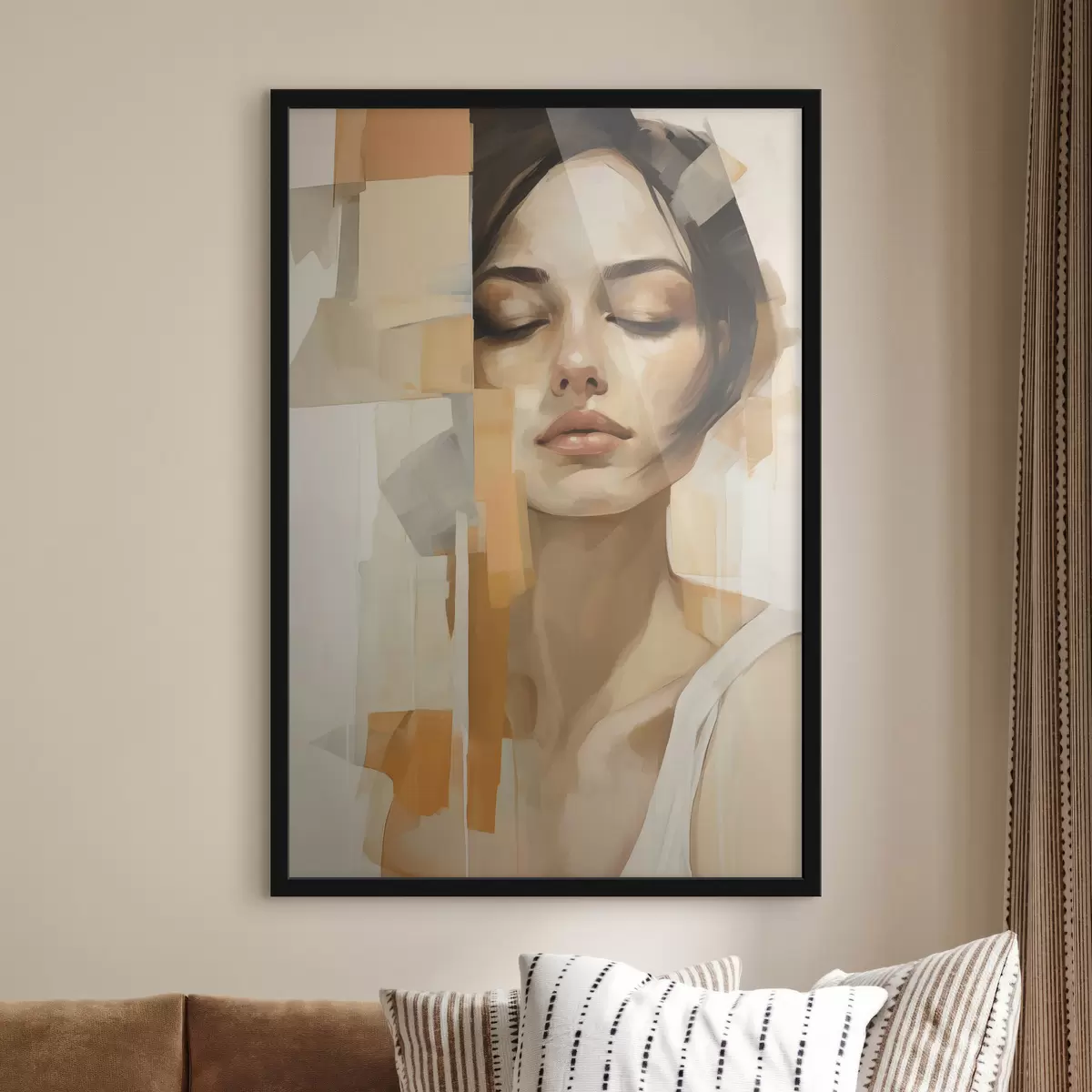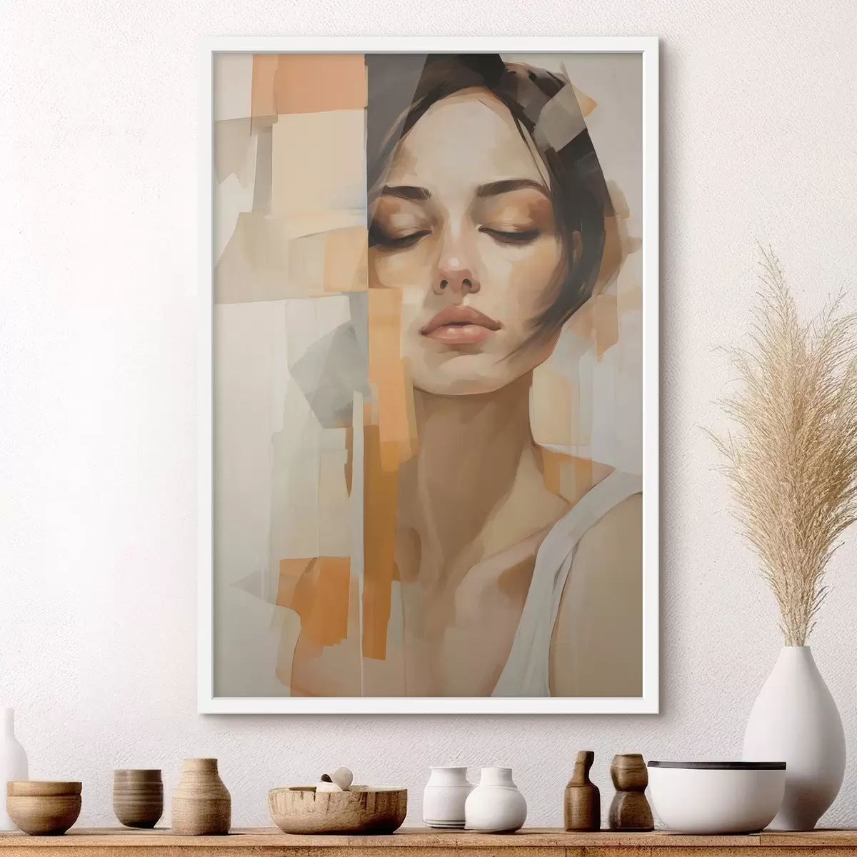 Poster Retrato abstracto de una mujer con formas naranjas y beige Nr f48736
