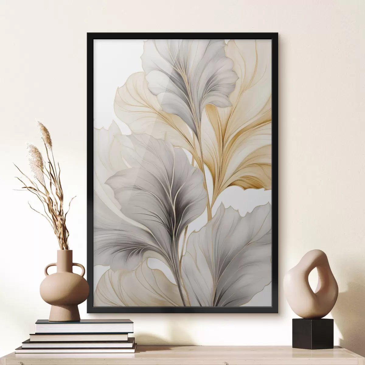Poster Hojas grandes y translúcidas en tonos grises y amarillos Nr f48745