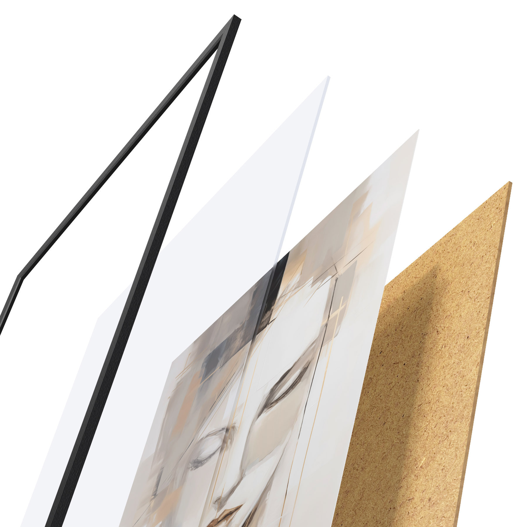 El póster consta de marco, plexiglás, imagen impresa y soporte de aglomerado. El póster puede colgarse inmediatamente en la pared gracias a los soportes de la parte posterior.