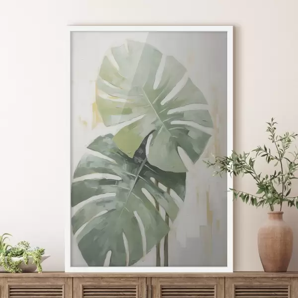 Poster Pintura imitación hojas tropicales f48763