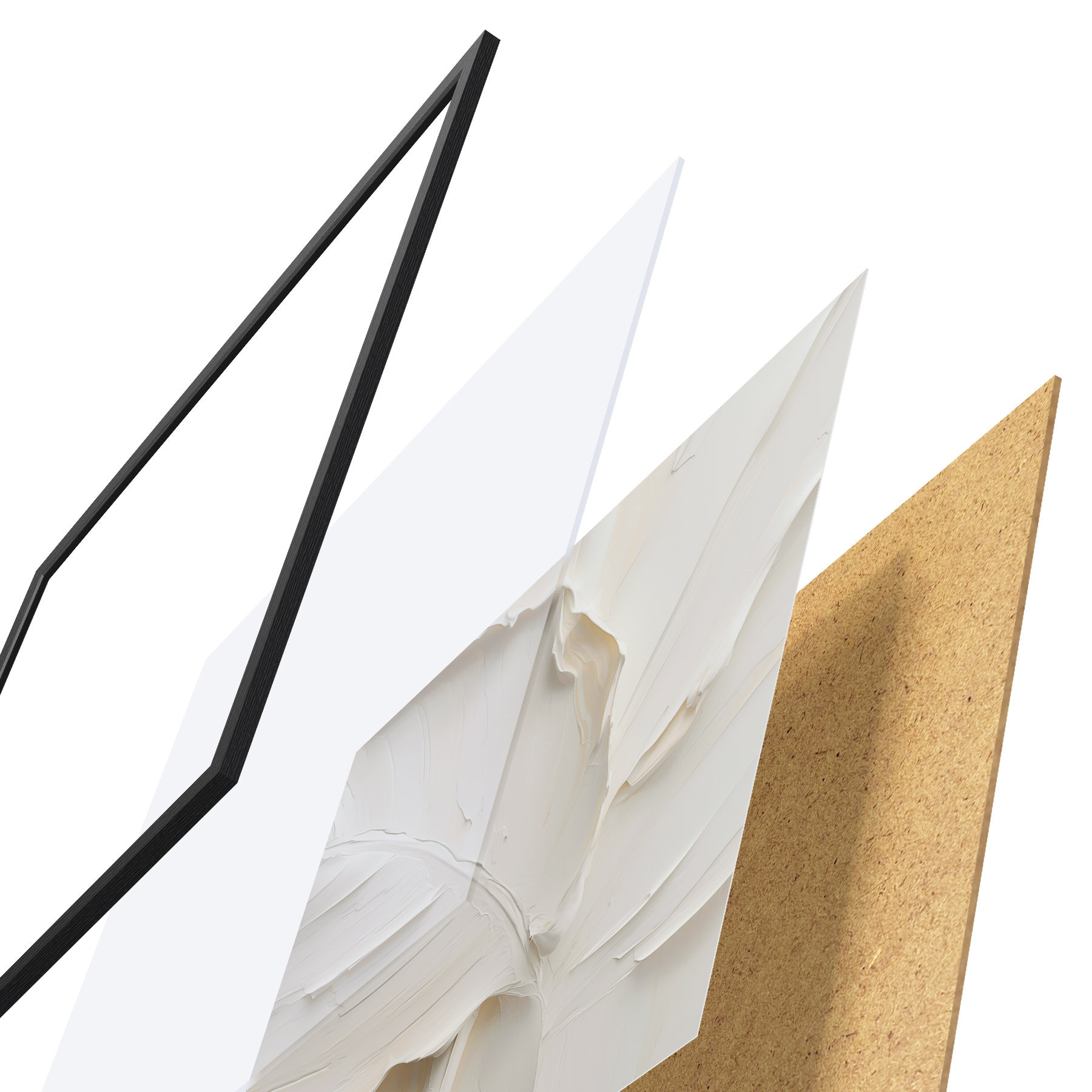 El póster consta de marco, plexiglás, imagen impresa y soporte de aglomerado. El póster puede colgarse inmediatamente en la pared gracias a los soportes de la parte posterior.