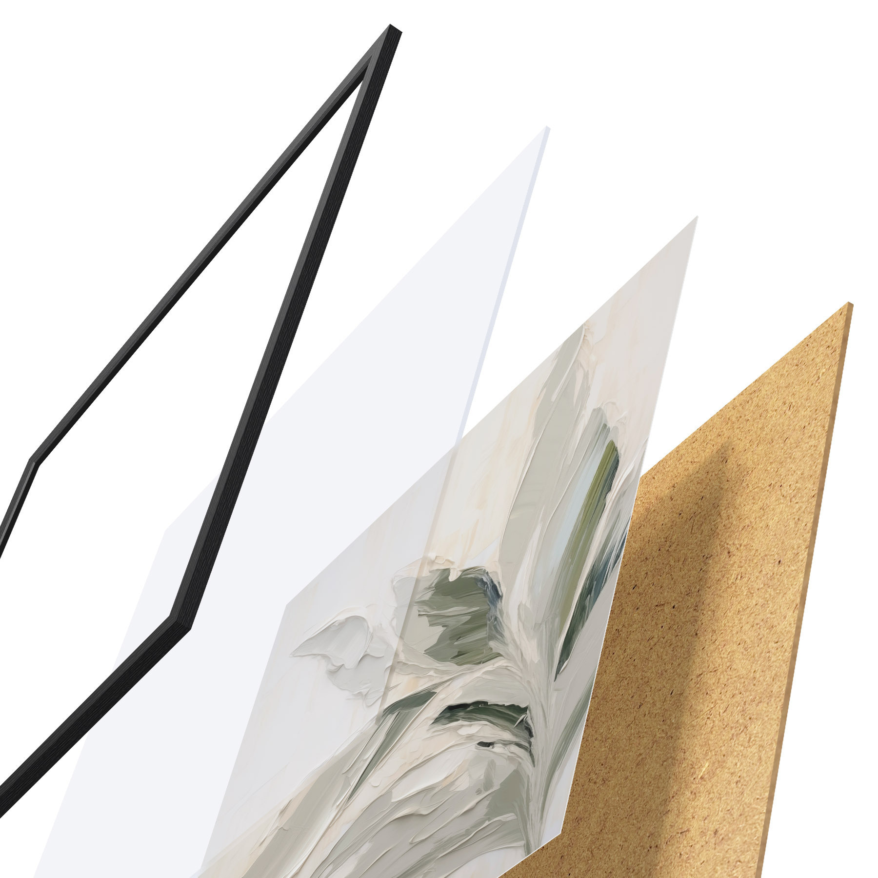 El póster consta de marco, plexiglás, imagen impresa y soporte de aglomerado. El póster puede colgarse inmediatamente en la pared gracias a los soportes de la parte posterior.