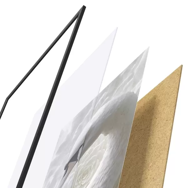 El póster consta de marco, plexiglás, imagen impresa y soporte de aglomerado. El póster puede colgarse inmediatamente en la pared gracias a los soportes de la parte posterior.