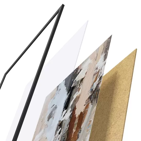 El póster consta de marco, plexiglás, imagen impresa y soporte de aglomerado. El póster puede colgarse inmediatamente en la pared gracias a los soportes de la parte posterior.