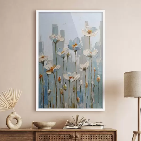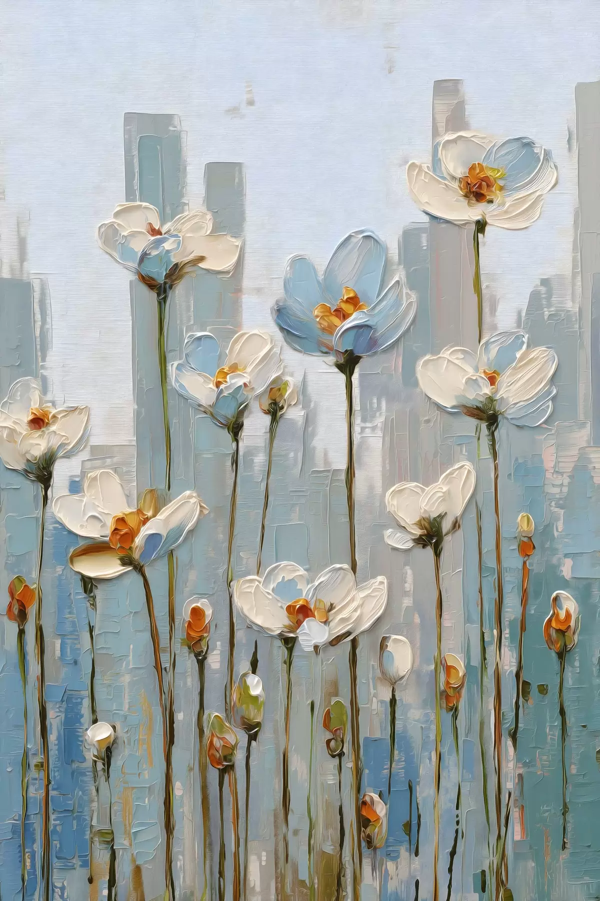 Poster flores con la ciudad de fondo, al estilo de una pintura al óleo Nr f48786