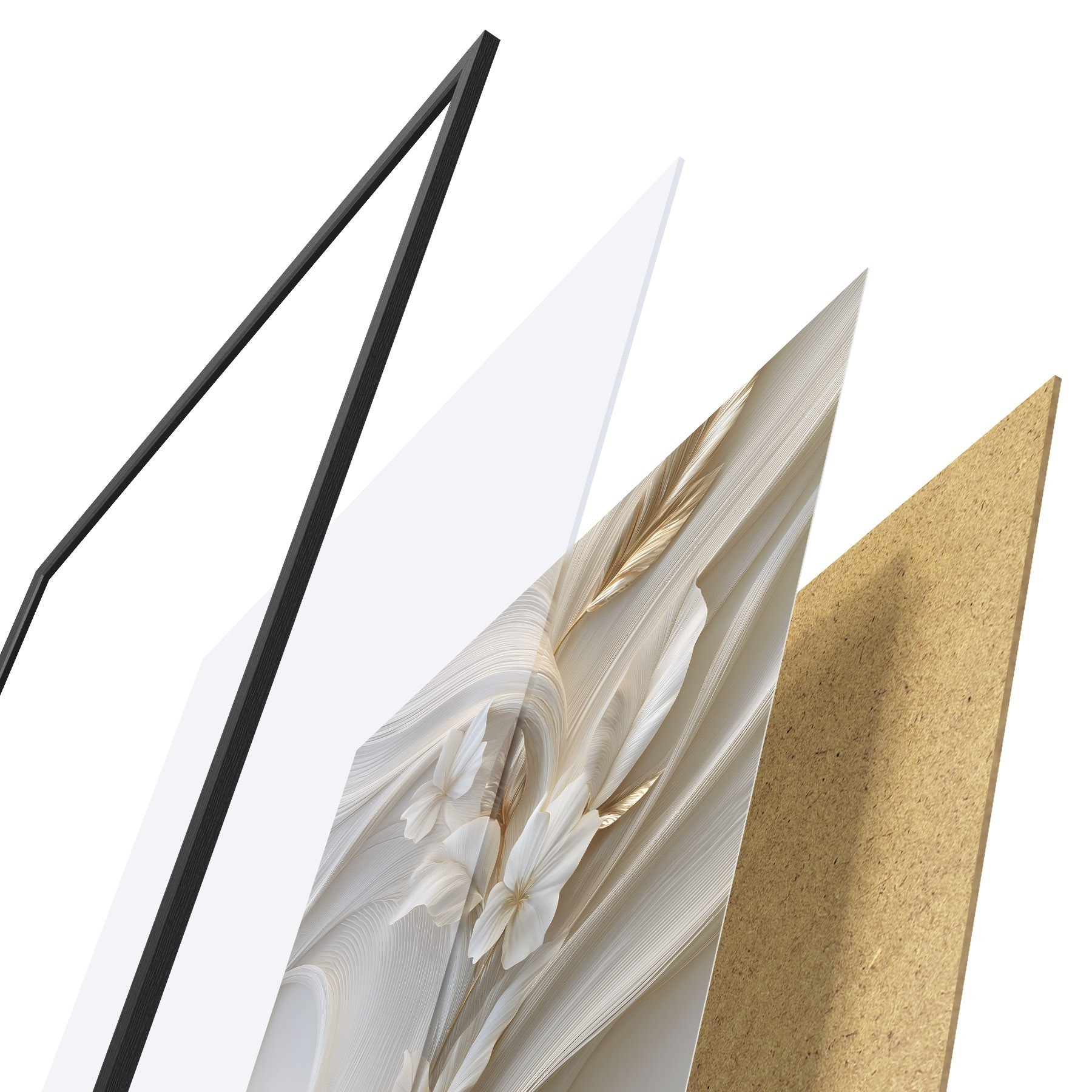 El póster consta de marco, plexiglás, imagen impresa y soporte de aglomerado. El póster puede colgarse inmediatamente en la pared gracias a los soportes de la parte posterior.