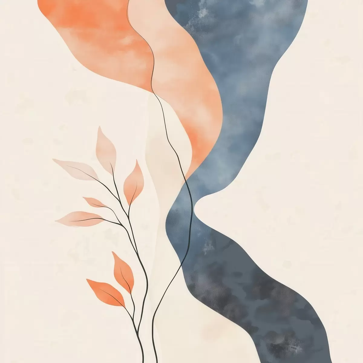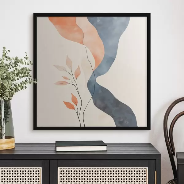 Poster Composición floral con líneas fluidas en una paleta de colores azul y naranja Nr f48837