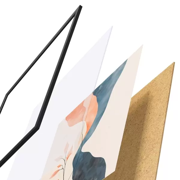 El póster consta de marco, plexiglás, imagen impresa y soporte de aglomerado. El póster puede colgarse inmediatamente en la pared gracias a los soportes de la parte posterior.
