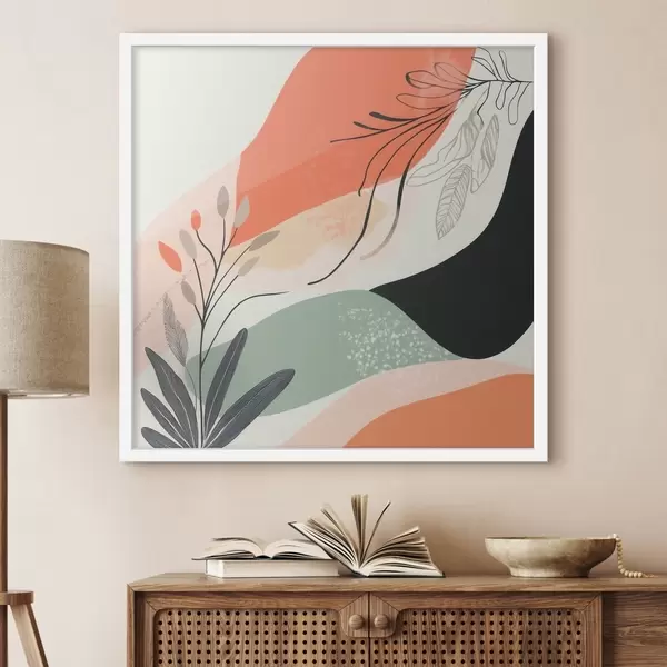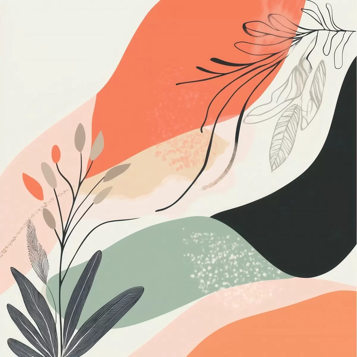 Poster Motivos vegetales estilizados sobre un fondo de manchas de acuarela f48839