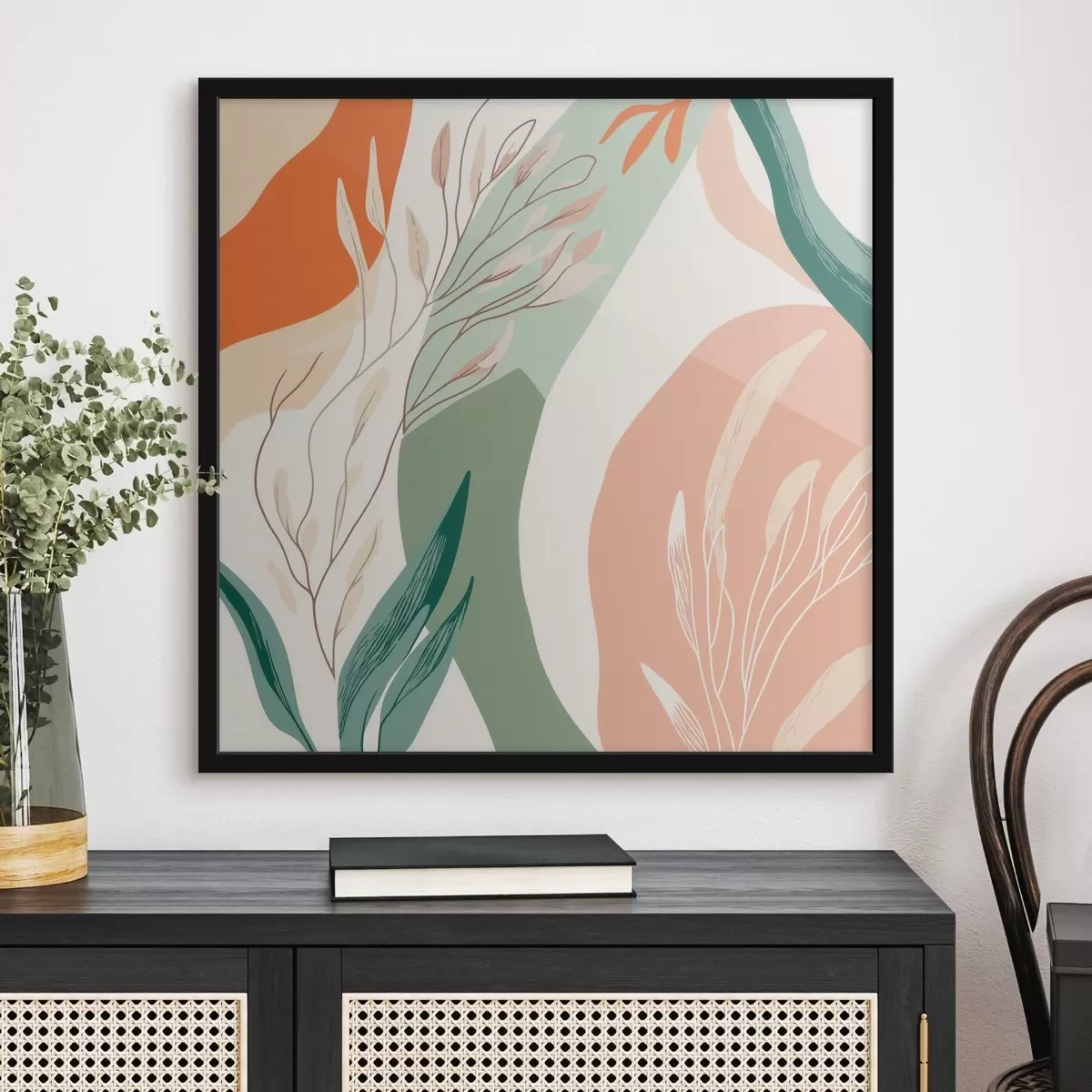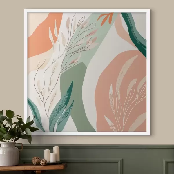 Poster Arte botánico con formas suaves en una paleta de tonos verde coral Nr f48840