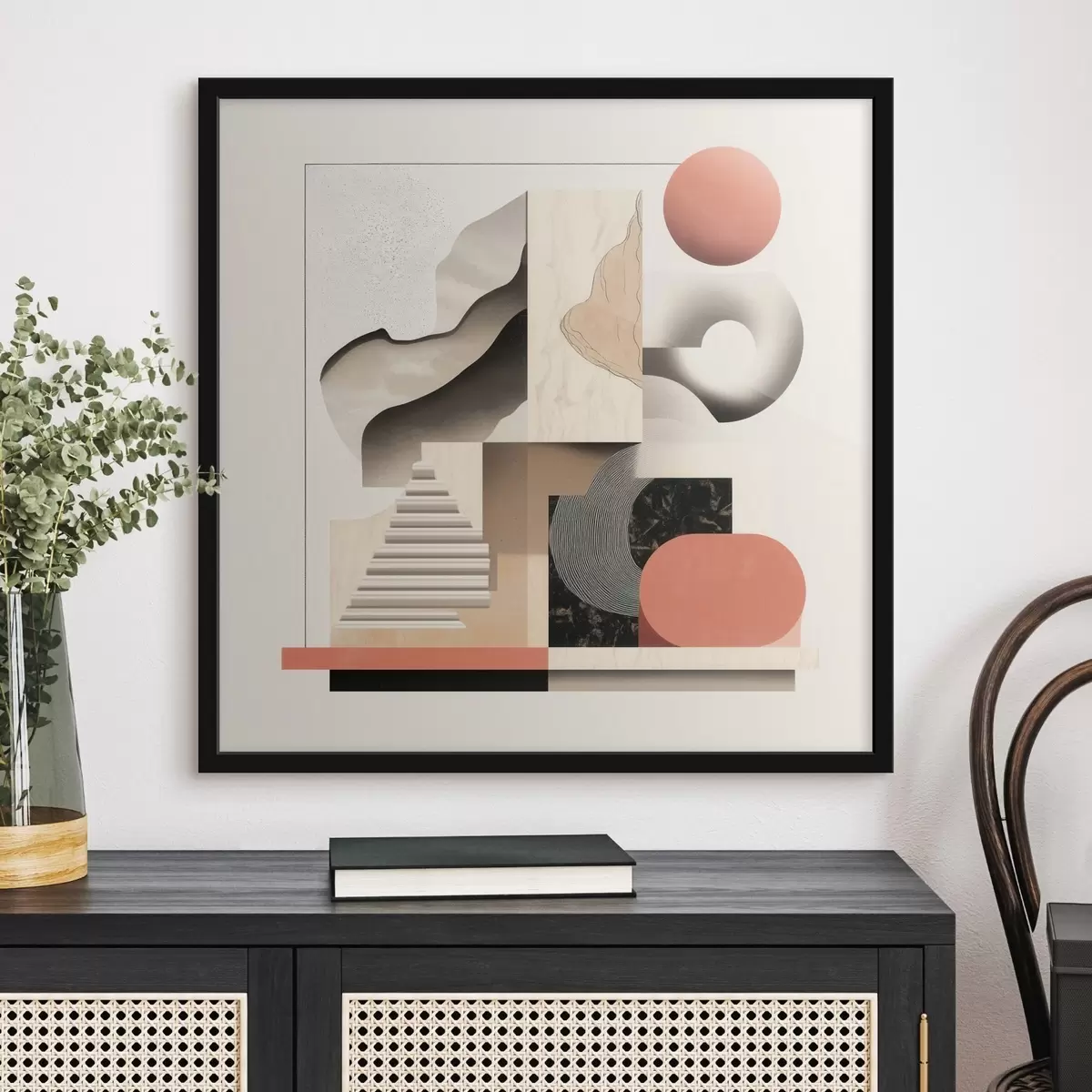 Poster Formas abstractas en una paleta de tonos beige y gris, en un estilo pictórico contemporáneo f48842