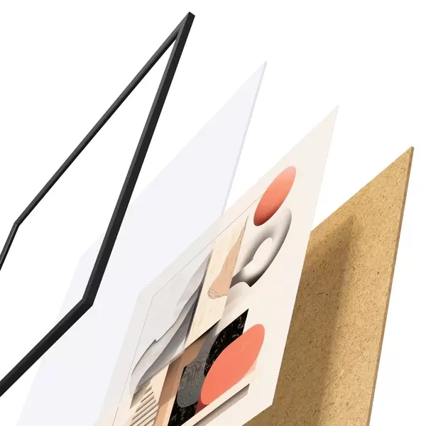 El póster consta de marco, plexiglás, imagen impresa y soporte de aglomerado. El póster puede colgarse inmediatamente en la pared gracias a los soportes de la parte posterior.