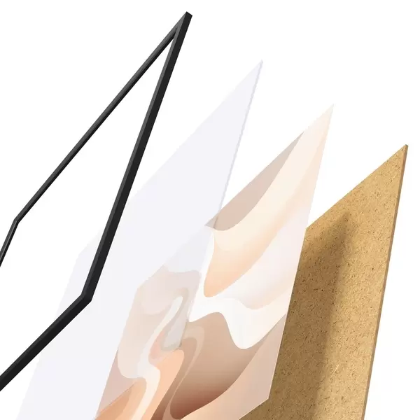 El póster consta de marco, plexiglás, imagen impresa y soporte de aglomerado. El póster puede colgarse inmediatamente en la pared gracias a los soportes de la parte posterior.